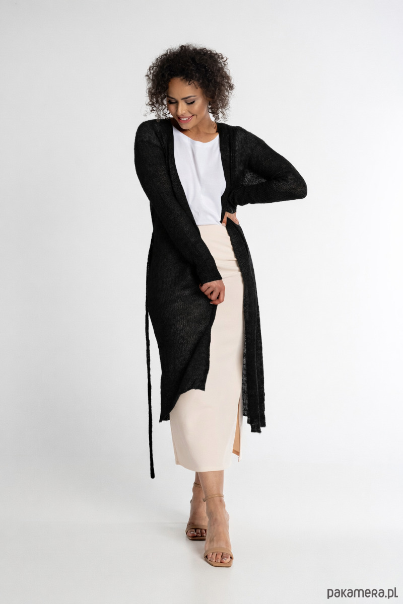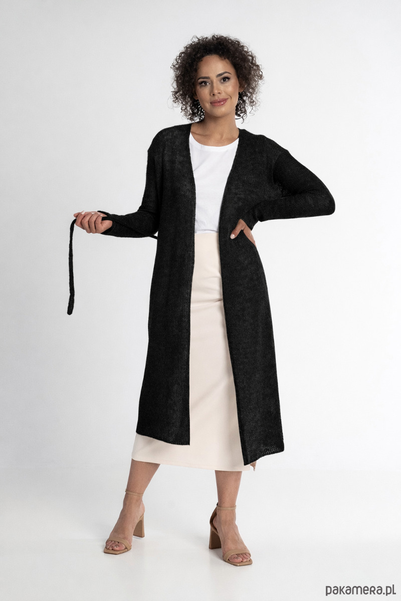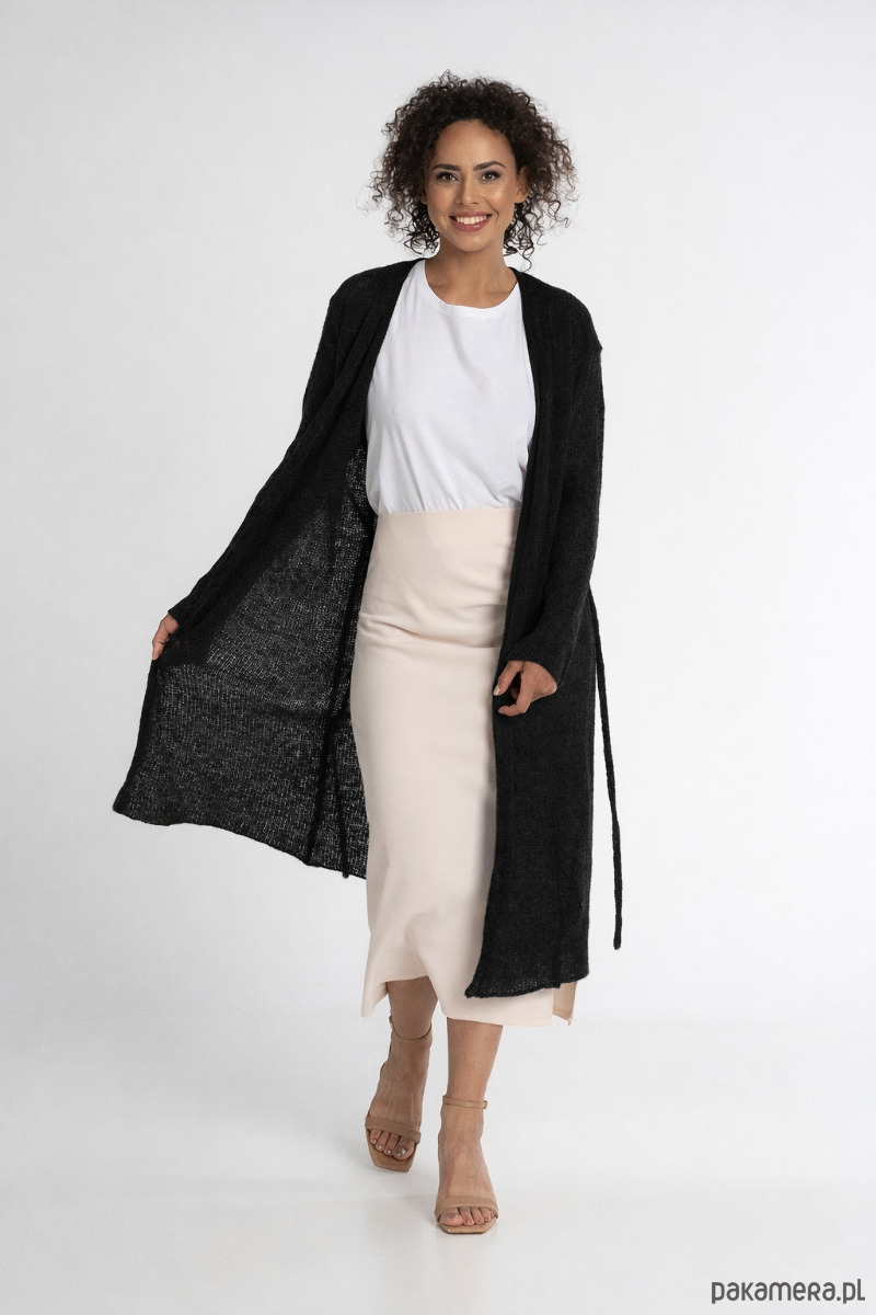 Szukasz idealnego okrycia na chłodniejsze dni? Nasz długi kardigan damski z paskiem to połączenie elegancji i niesamowitej miękkości. Ten wełniany sweter damski sięga do połowy łydki, dzięki czemu optycznie wydłuża sylwetkę, nadając jej lekkości.