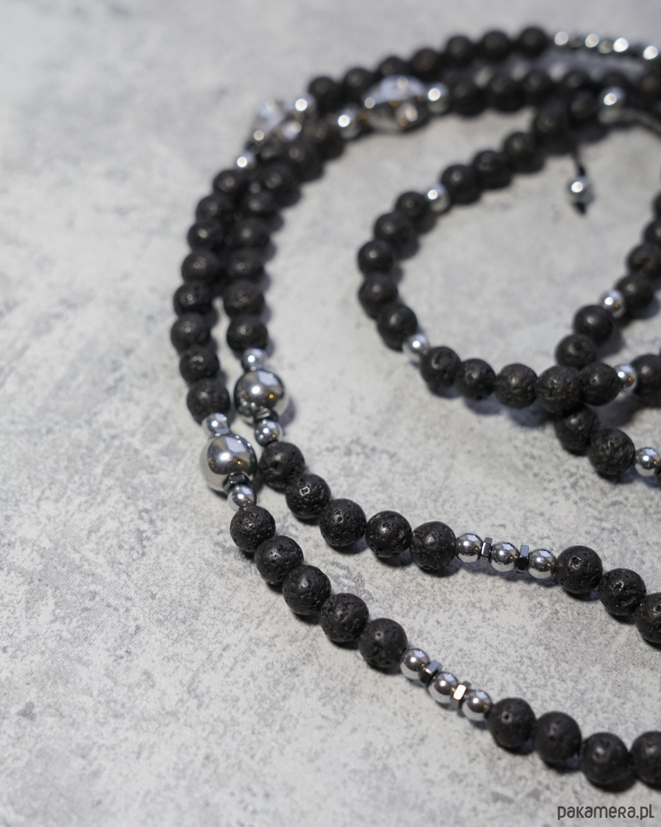 Materiały: lawa wulkaniczna, hematyt, stal szlachetna.