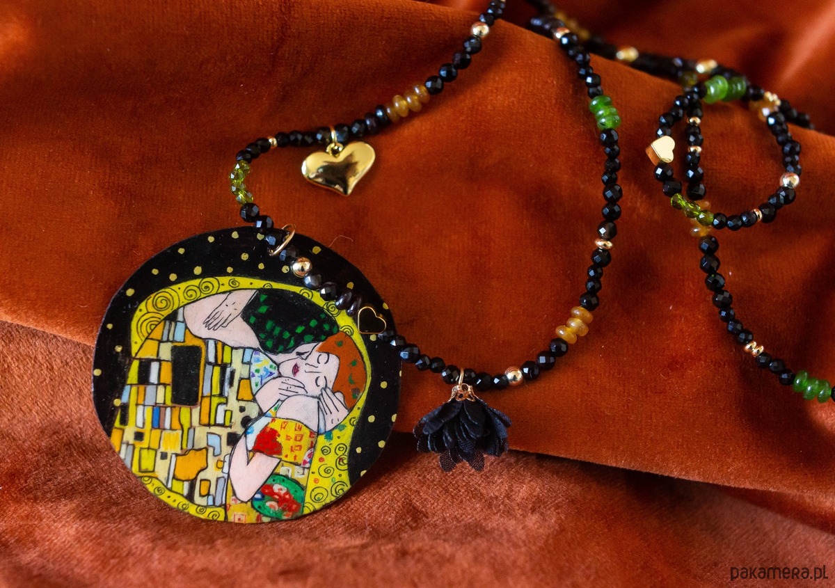 Jest to jedyny w swoim rodzaju naszyjnik inspirowany obrazem "Pocałunek" jednym z najbardziej znanych obrazów Gustava Klimta, powstały w latach 1907-1908, podczas tzw. "złotego okresu" artysty. Obraz uznawany jest za kultowy symbol romantycznej miłości i jeden z najsłynniejszych przykładów secesji wiedeńskiej.
