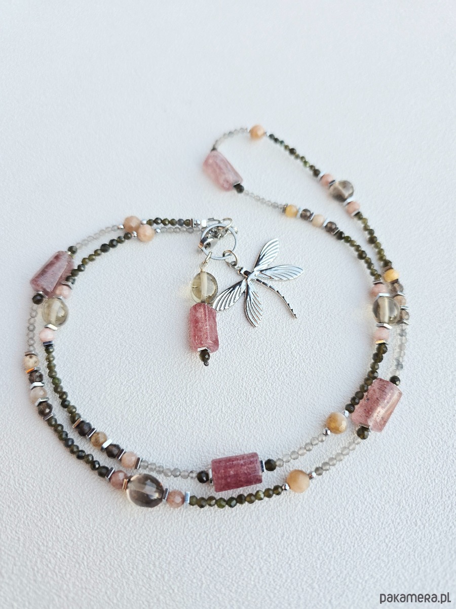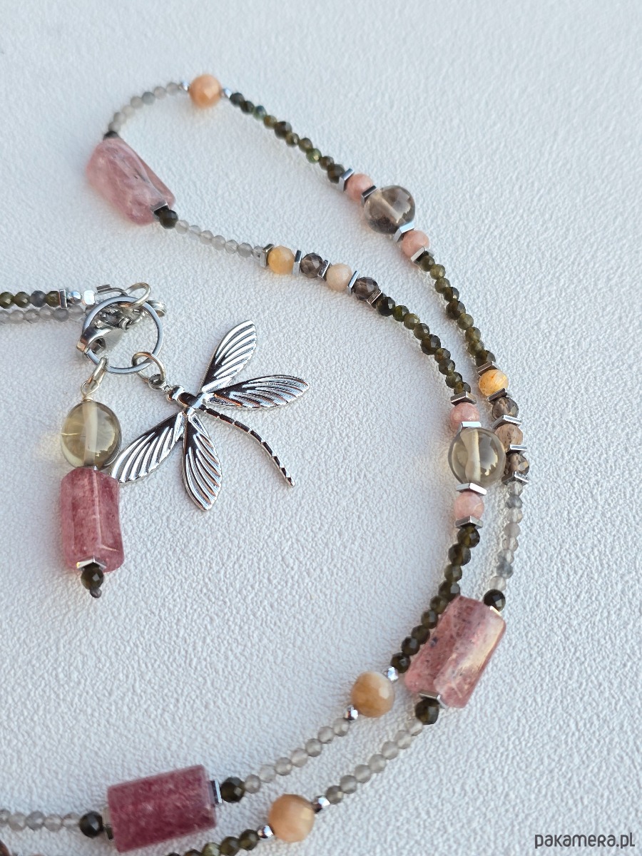 Wykorzystane kamienie: kwarc dymny, oliwin, kamień słoneczny, kwarc arbuzowy, hematyt.