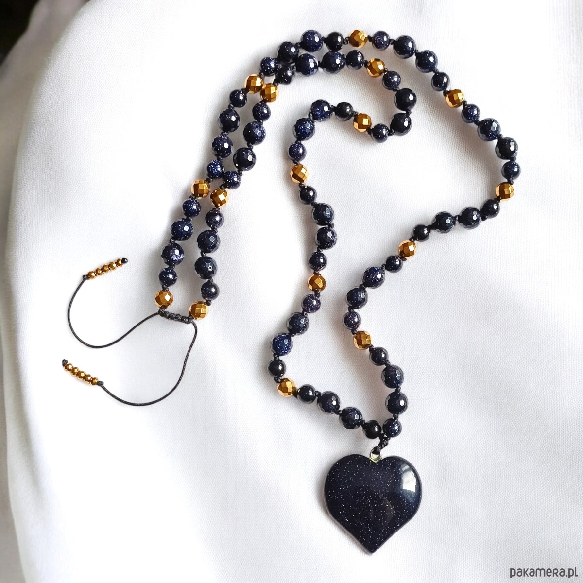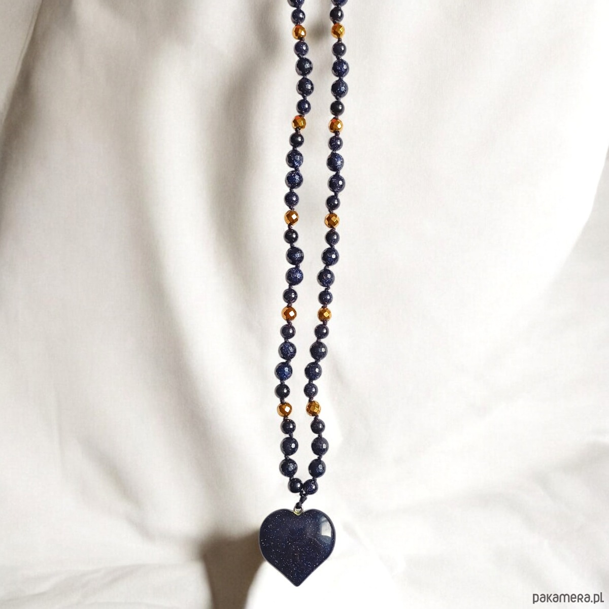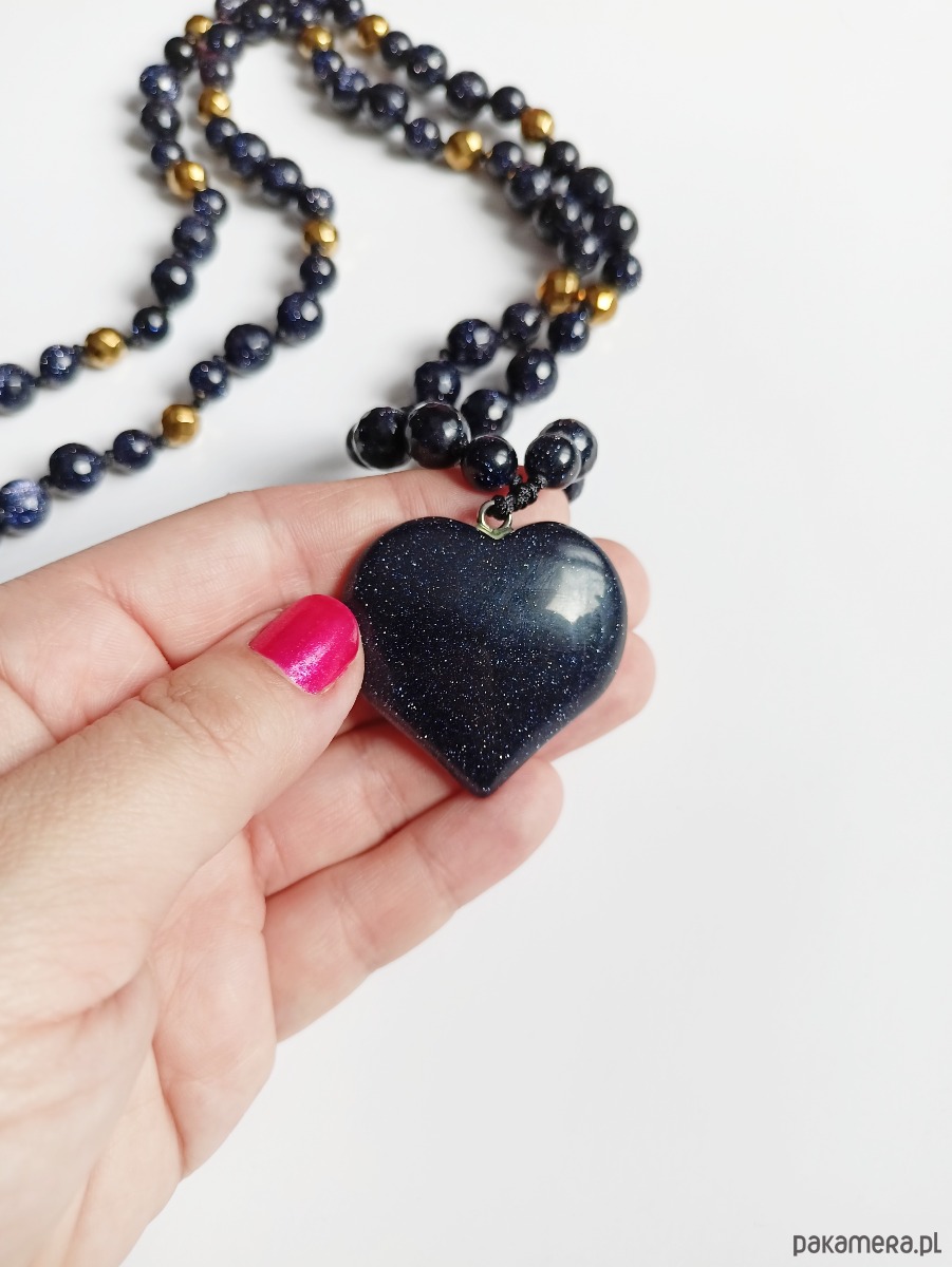 DŁUGI naszyjnik z sercem : noc kairu : granatowy naszyjnik