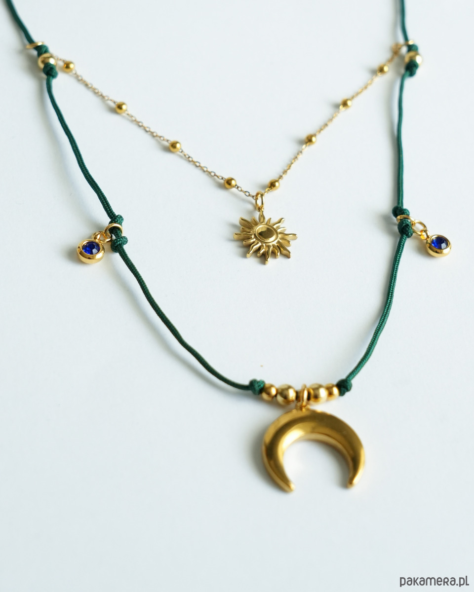 Długi regulowany naszyjnik z LUNULĄ i słońcem