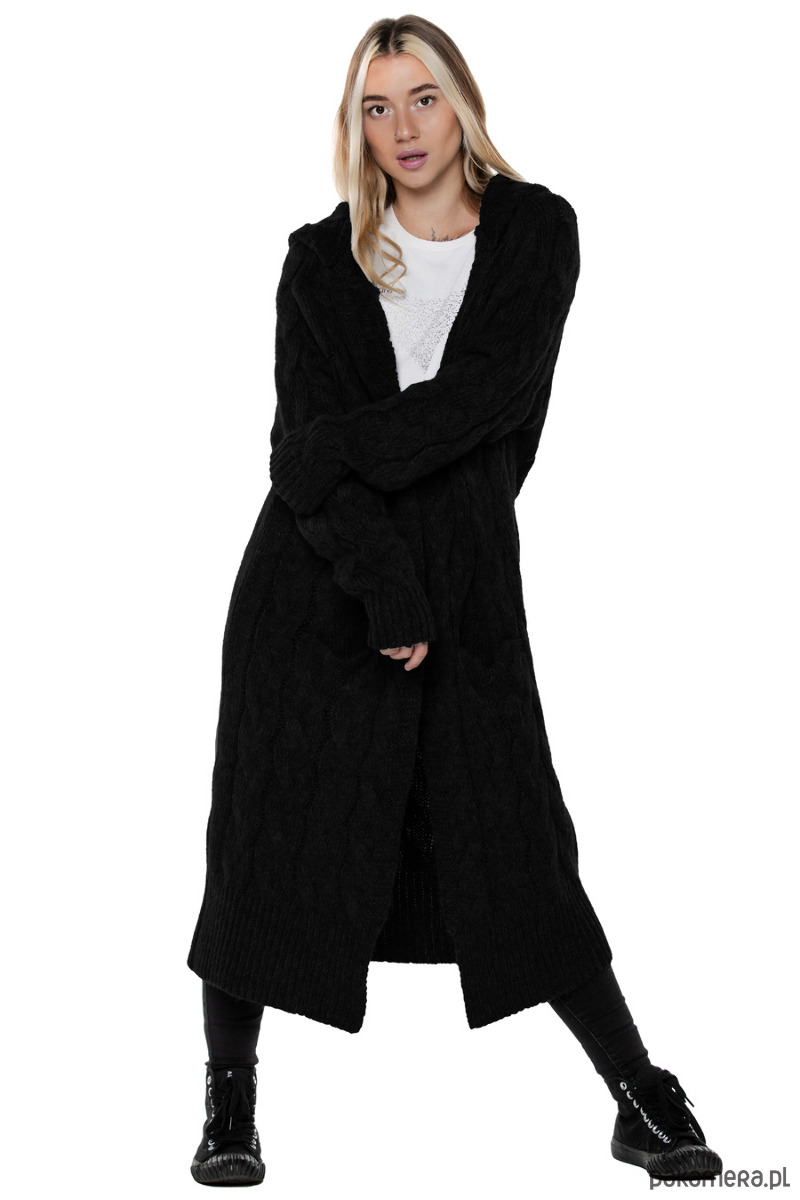 Długi sweter marki Underworld świetnie sprawdzi się na chłodniejsze dni. Gruby, warkoczowy splot wygląda niezwykle efektywnie, a duży kaptur dodaje charakteru całej stylizacji. Sweter posiada głębokie kieszenie i ściągaczowe wykończenie rękawów oraz dołu.