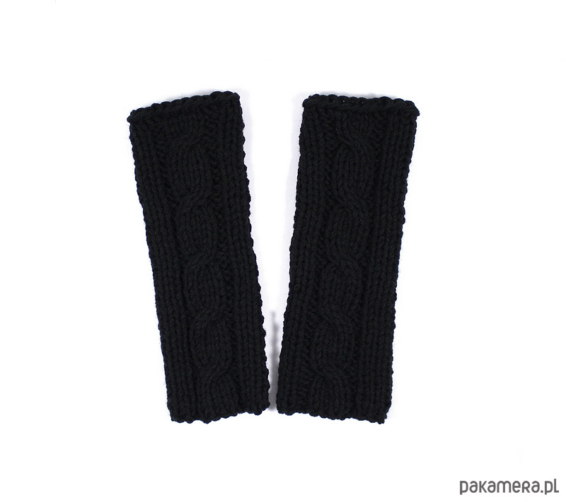 Cieplutkie mitenki z warkoczem robione na drutach.