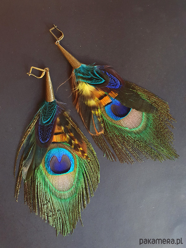 multikolorowe kolczyki z różnych gatunków naturalnych piór,