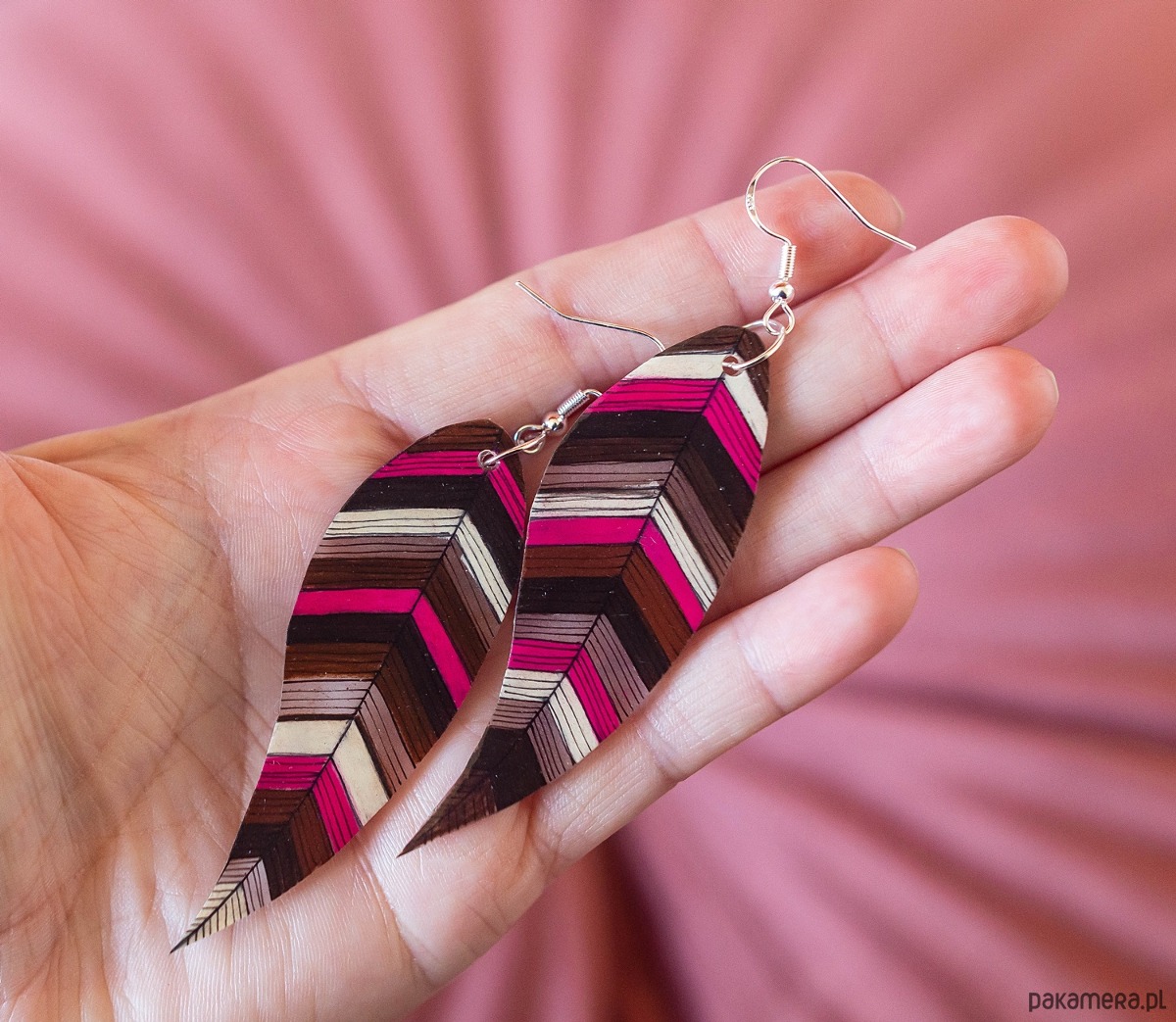 Kolczyki są niepowtarzalne,każda para różni się układem kolorów. Są bardzo lekkie.