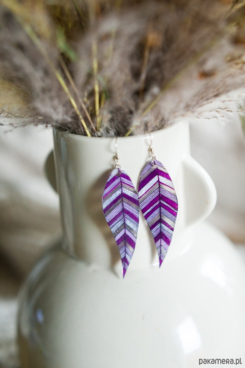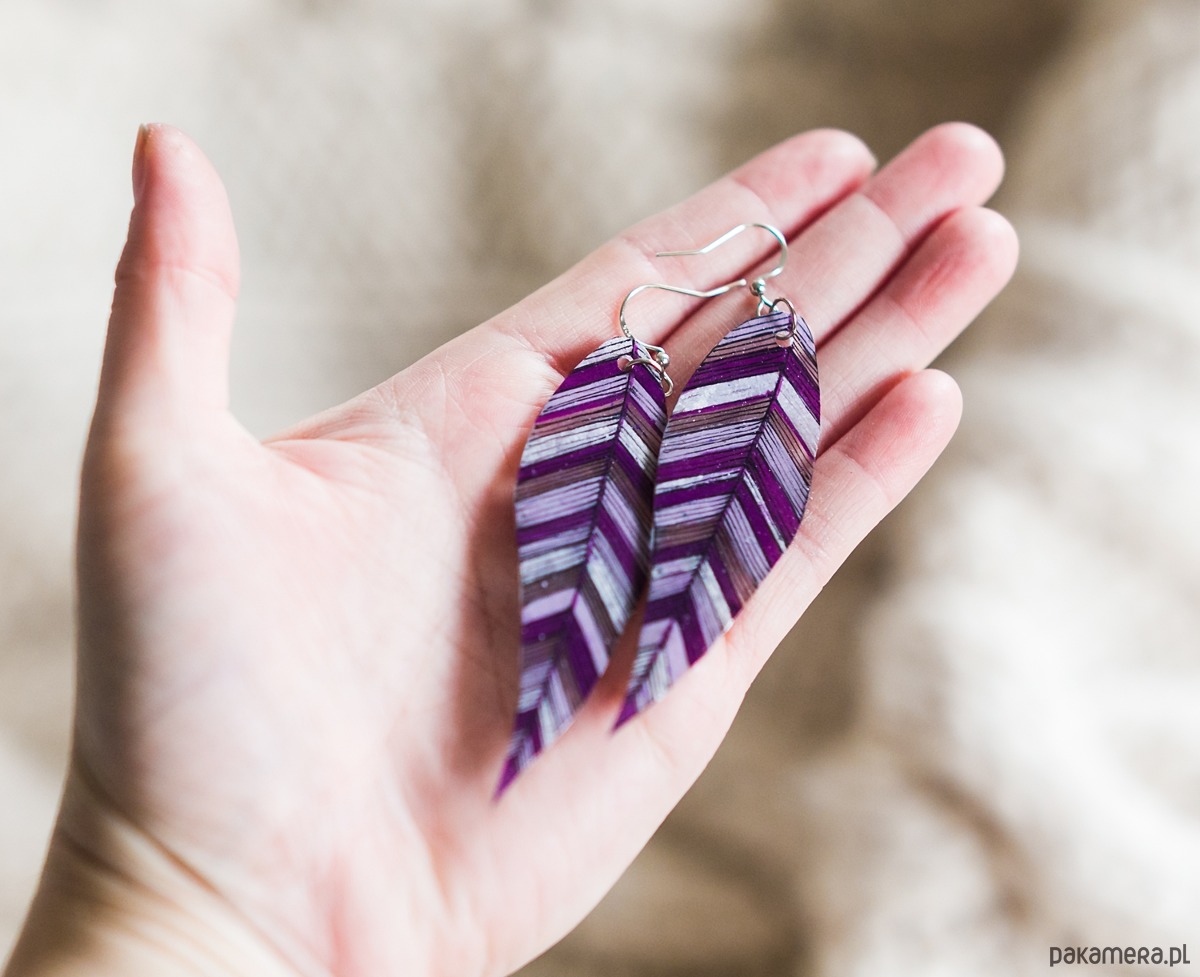 Powierzchnia listków została zabezpieczona kilkoma warstwami błyszczącego lakieru ekologicznego, dzięki czemu kolczyki ładnie mienią się w słońcu.
