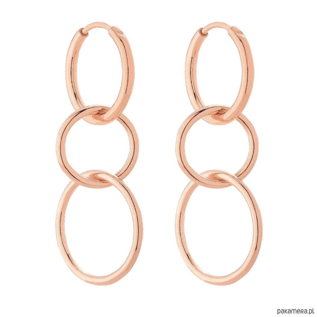Długie złote kolczyki potrójne koła. Całość wykonana ze srebra 925 powlekanego 18 karatowym różowym złotem.