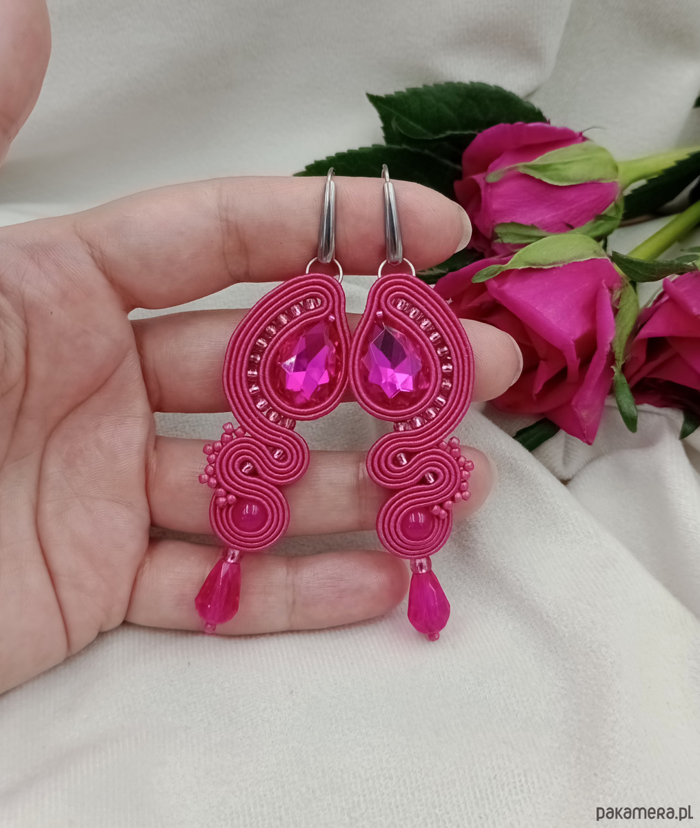 Długie kolczyki soutache na wesele, kolczyki fuksja