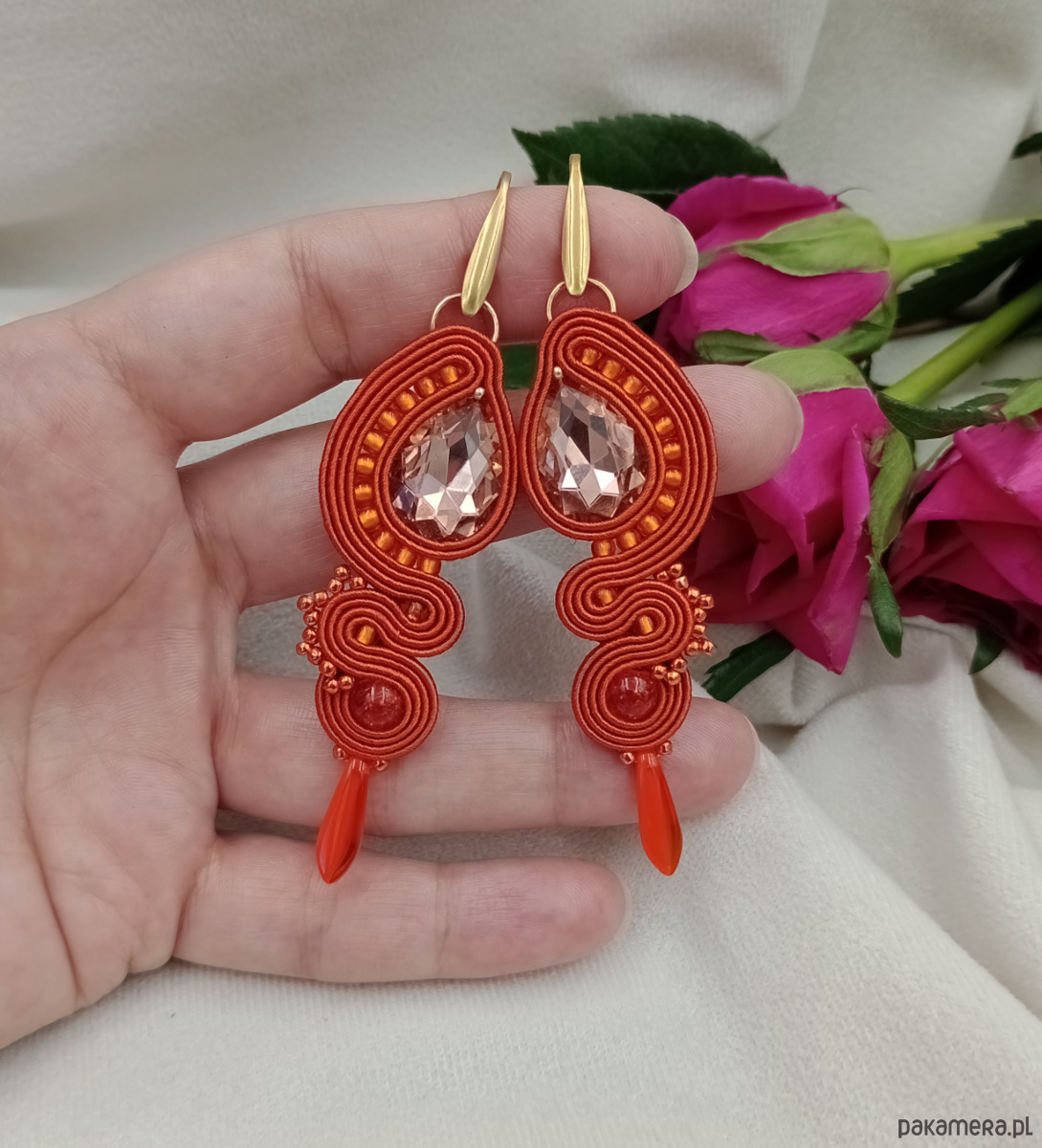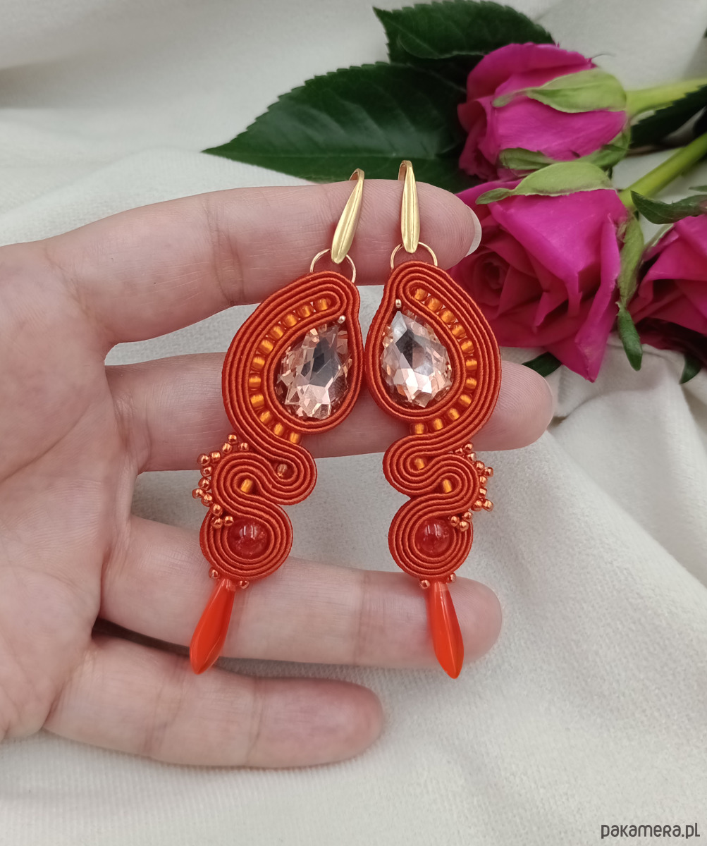 Długie kolczyki soutache na wesele, pomarańczowe kolczyki