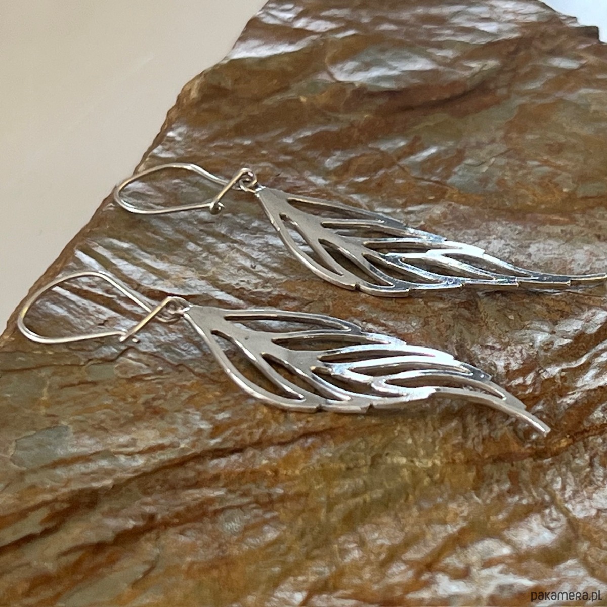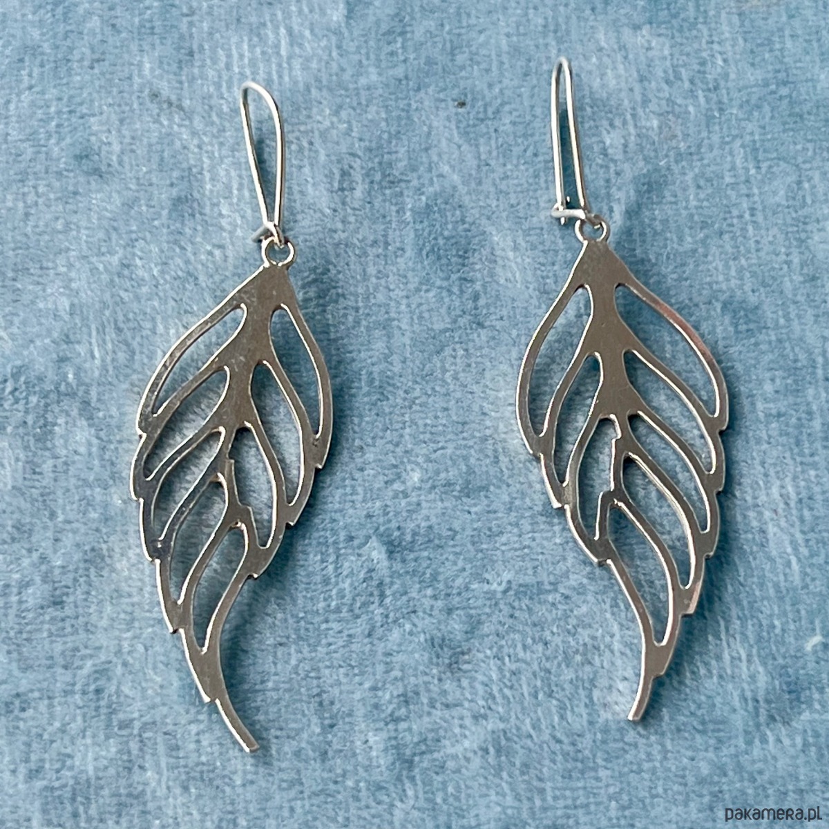 Długie kolczyki srebrne 925 w kształcie ażurowego listka