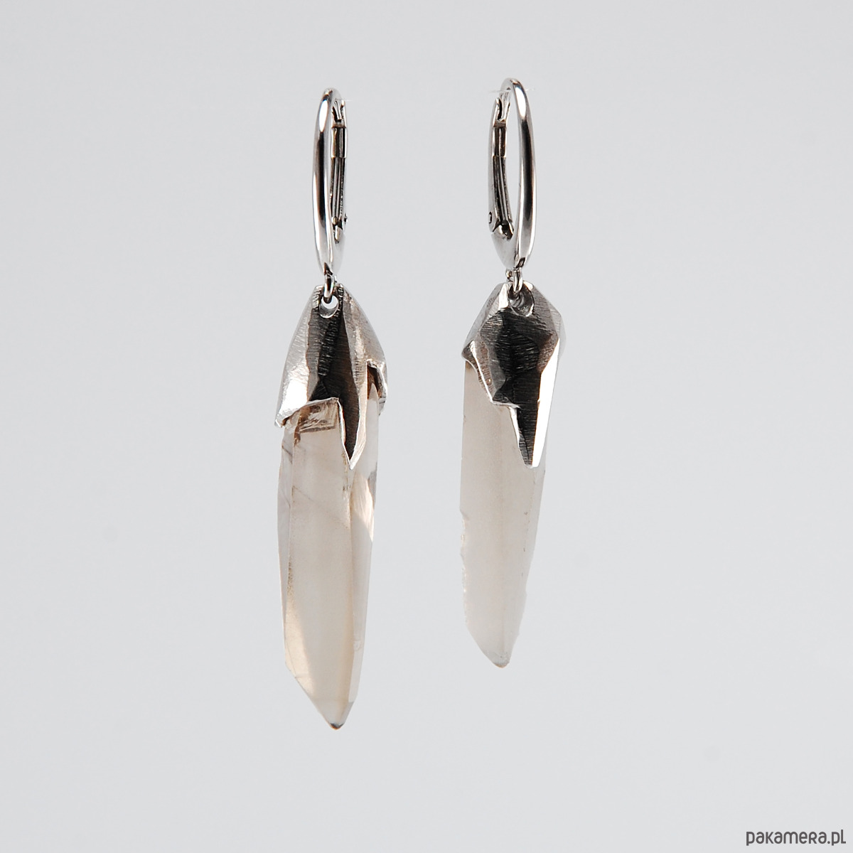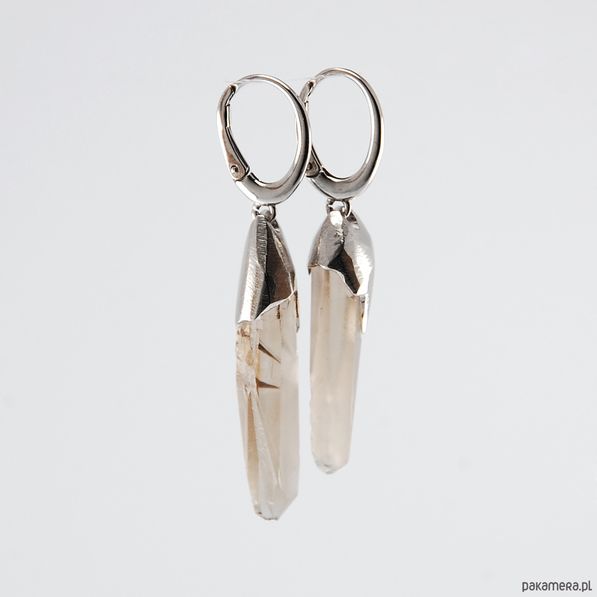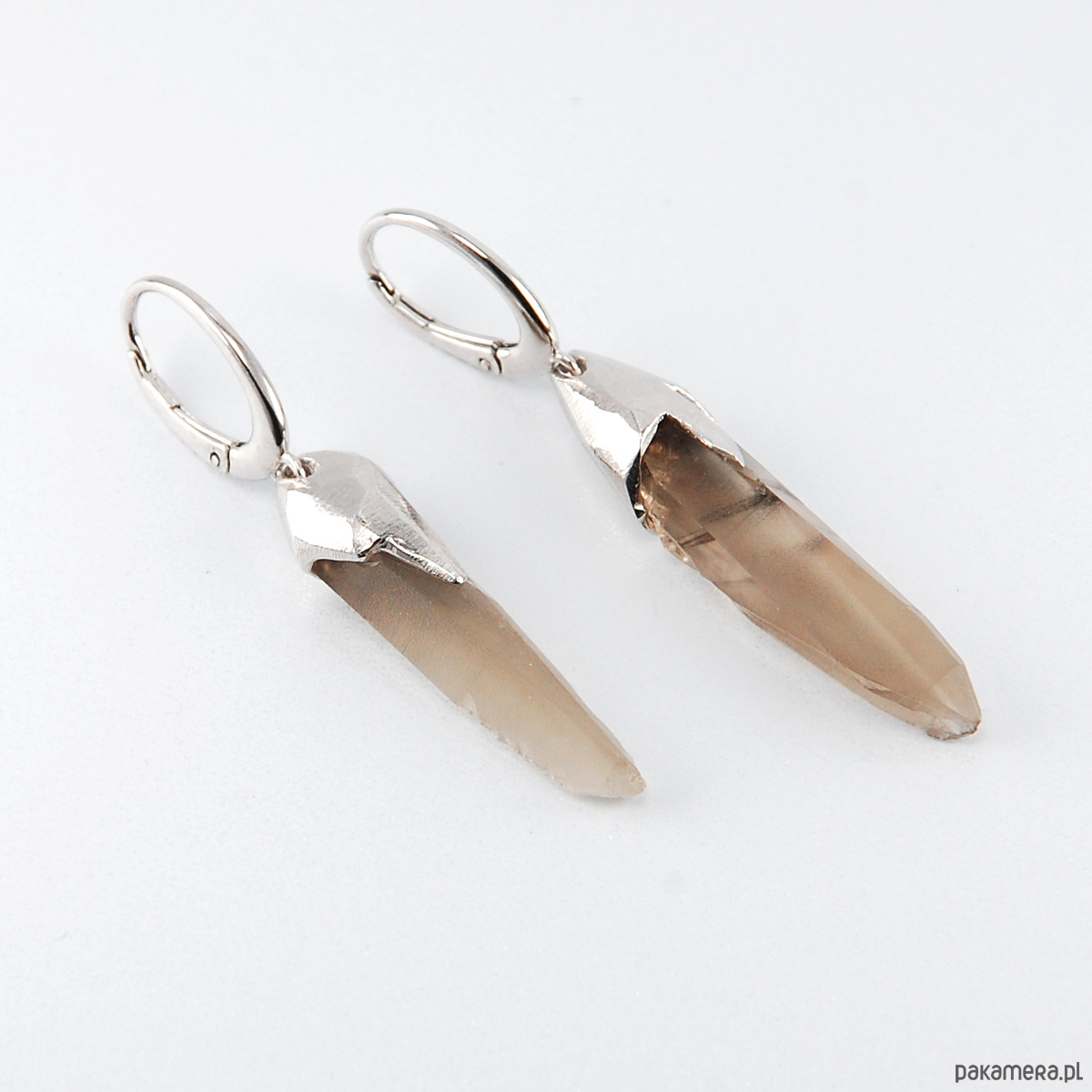 Kolczyki wykonane z unikatowej bryłki kwarcu dymnego oprawionego w srebro.
