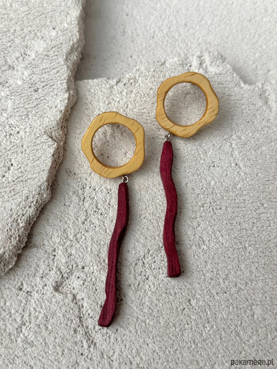 Długie kolczyki srebrne wiszące z drewna SAMARA