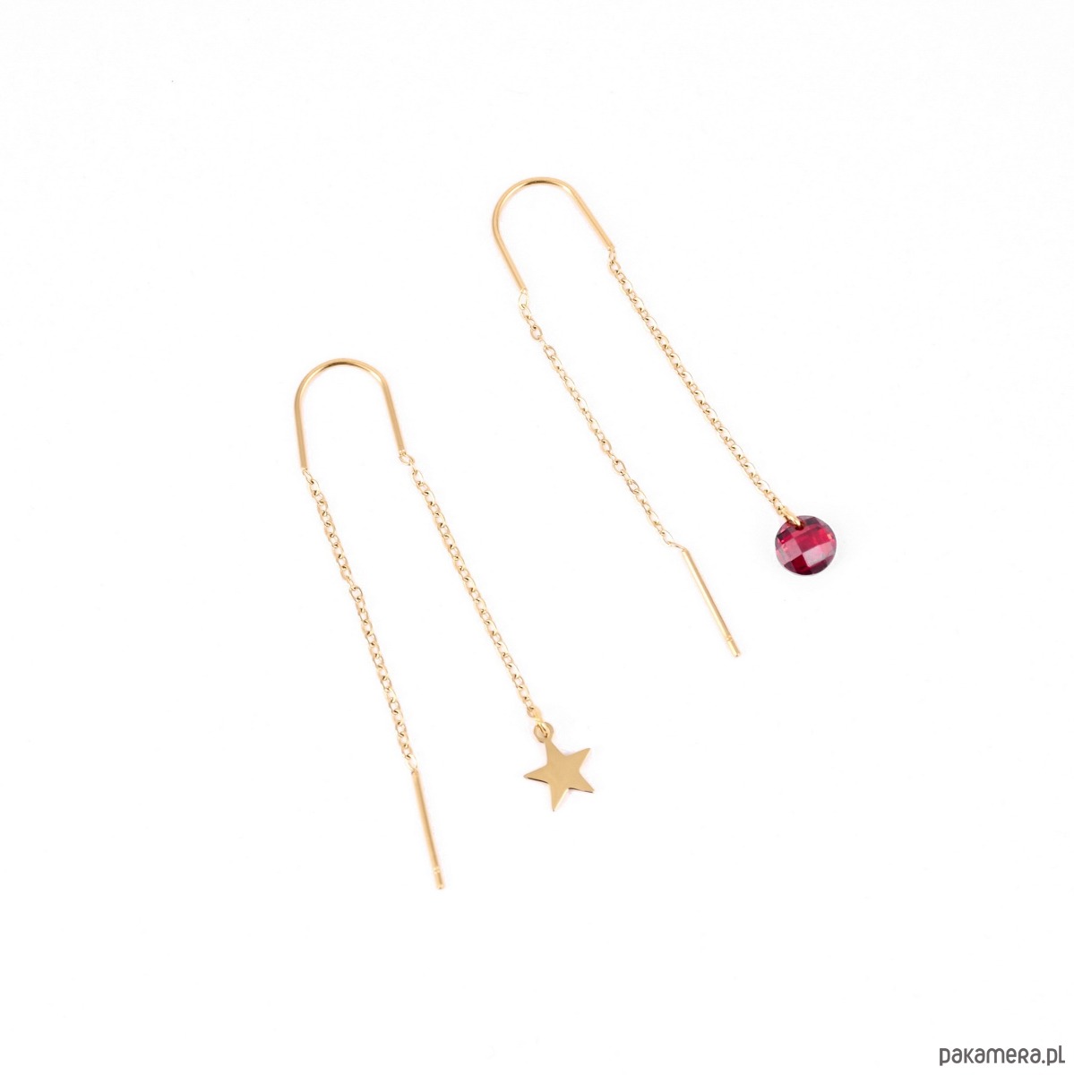 Wymiary:Długość kolczyków: ok. 5cmWielkość gwiazdki: ok. 7mmWielkość czerwonego kryształka: ok. 7mmMateriał: antyalergiczna stal szlachetna
