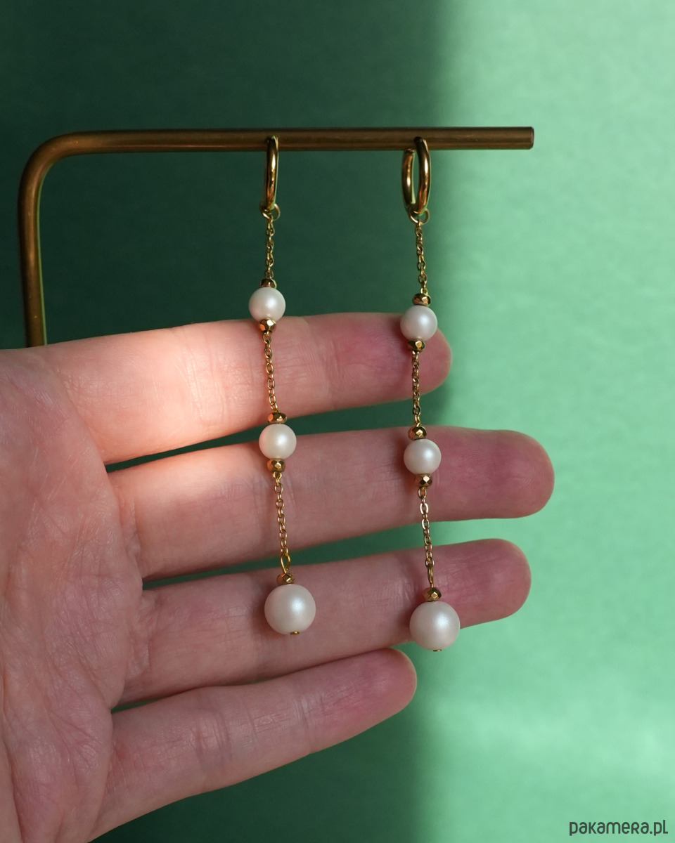 Te kolczyki to 2 w 1. Kupując je tak naprawdę otrzymujesz 2 pary kolczyków ponieważ po zdjęciu zawieszek z koralikami możesz nosić same kółka, które są super uniwersalne i pasują do każdej stylizacji.