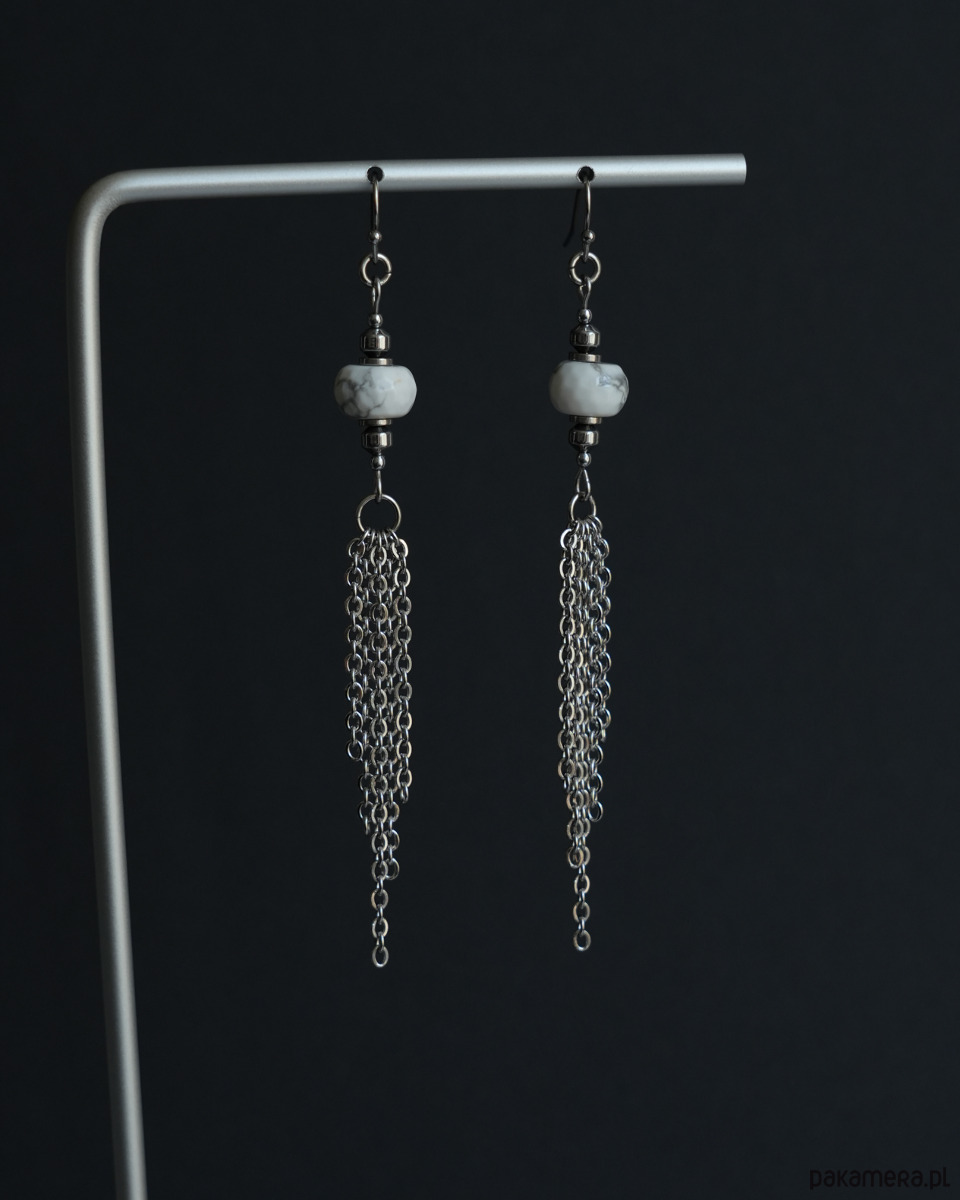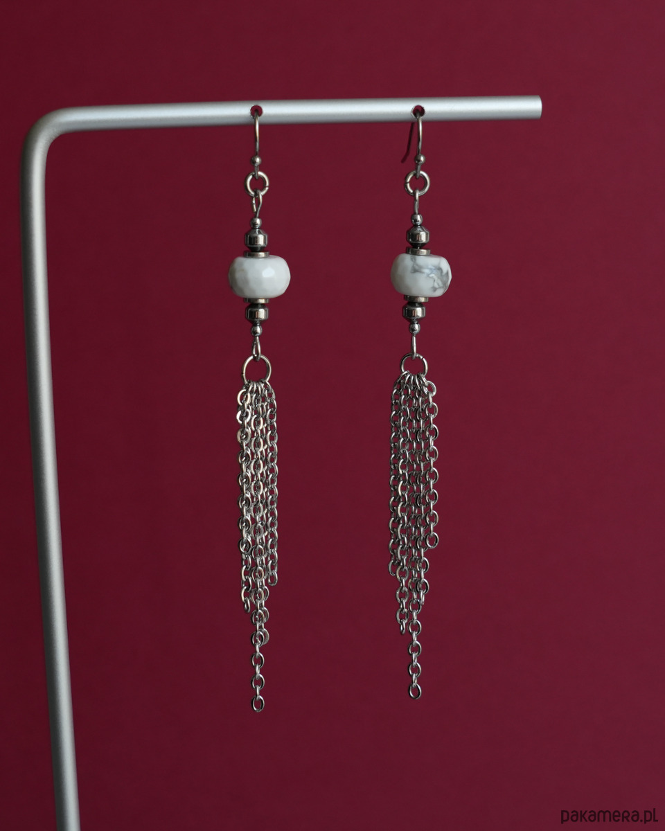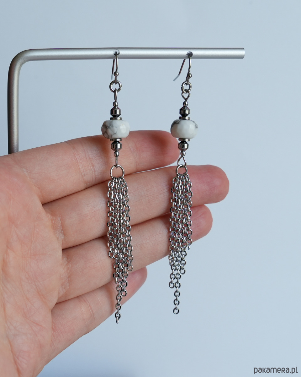 Długie kolczyki ze stali z howlitem i łańcuszkami
