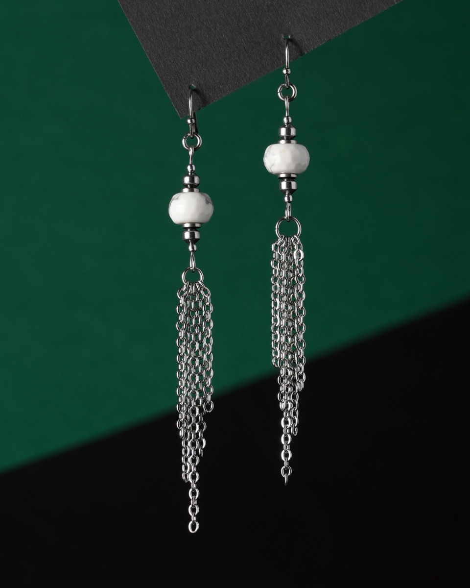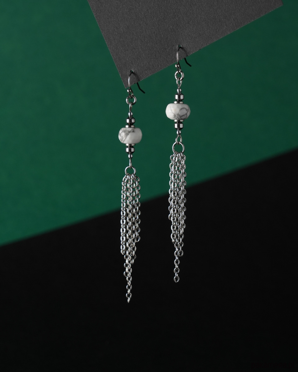 Długie kolczyki ze stali z howlitem i łańcuszkami