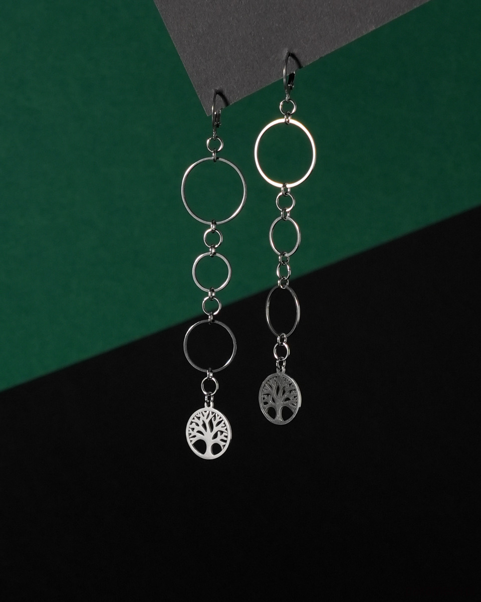 Długie kolczyki ze stali z kółkami i drzewem życia
