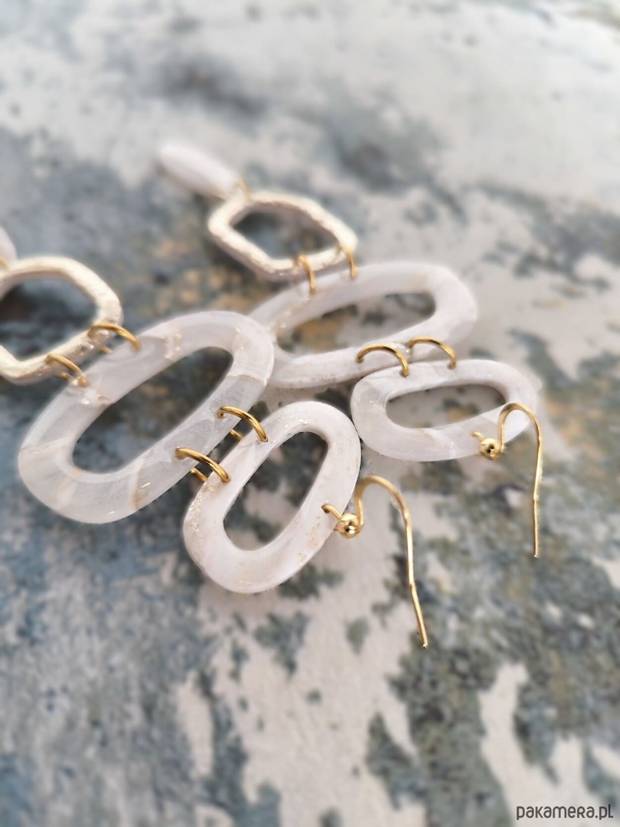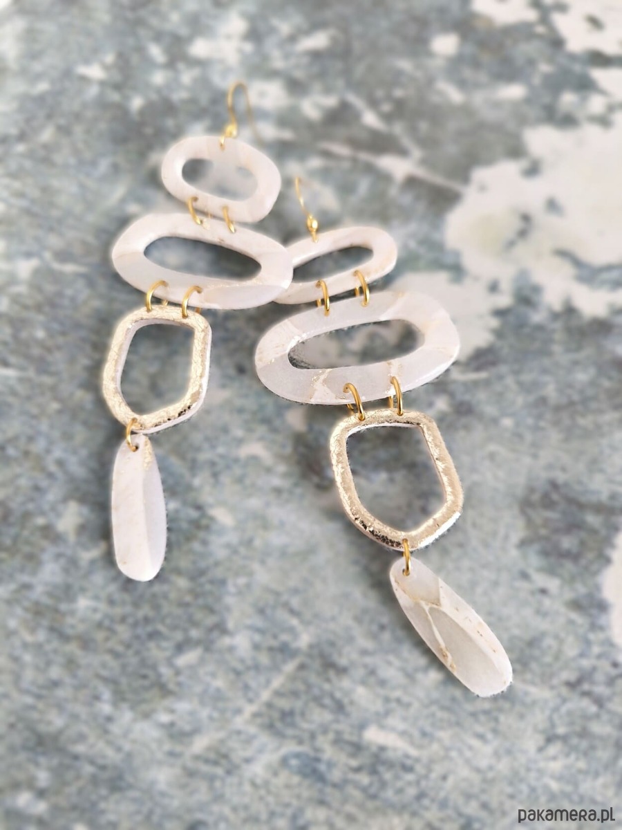 Kolczyki w stonowanej delikatnej jasnej kolorystyce z połyskiem i ze złocistymi akcentami