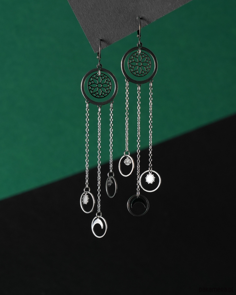 Długie magiczne kolczyki ze stali a'la łapacz snów