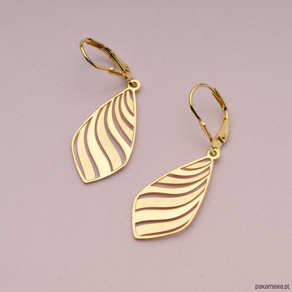 Eleganckie kolczyki wykonane ze srebra próby 925, pokryte warstwą złota, zachwycają swoim subtelnym i nowoczesnym designem. Delikatna, ażurowa forma w kształcie liścia nadaje im lekkości, a złocona powierzchnia pięknie odbija światło, dodając blasku każdej stylizacji.