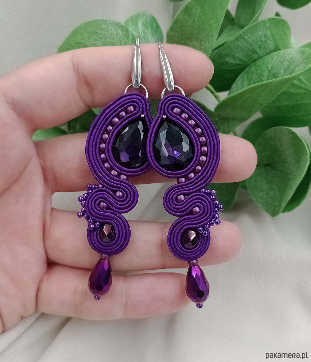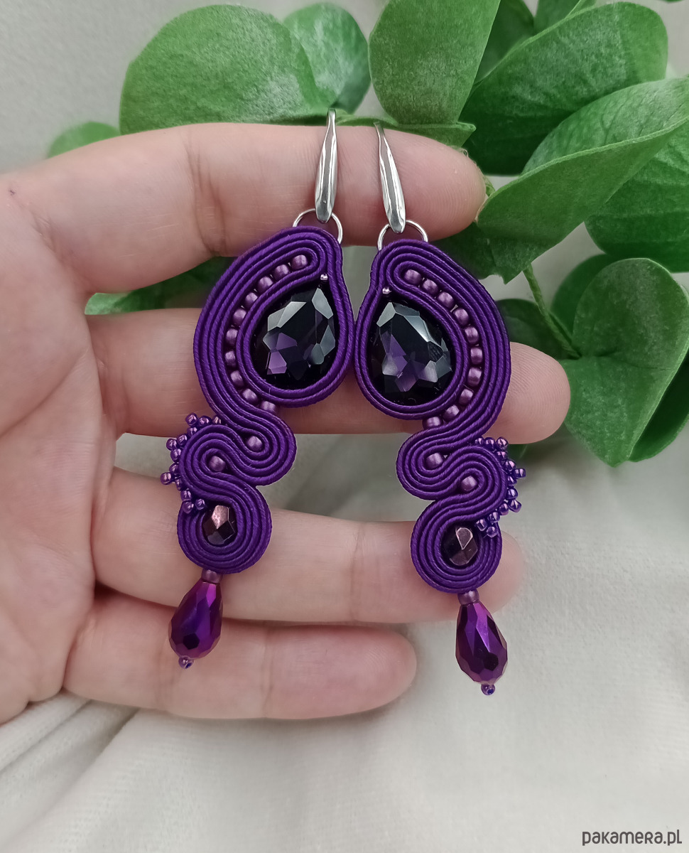 Długie śliwkowe kolczyki sutasz na wesele, fioletowe kolczyki