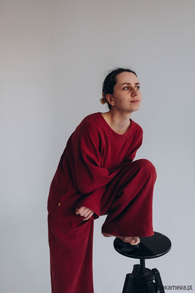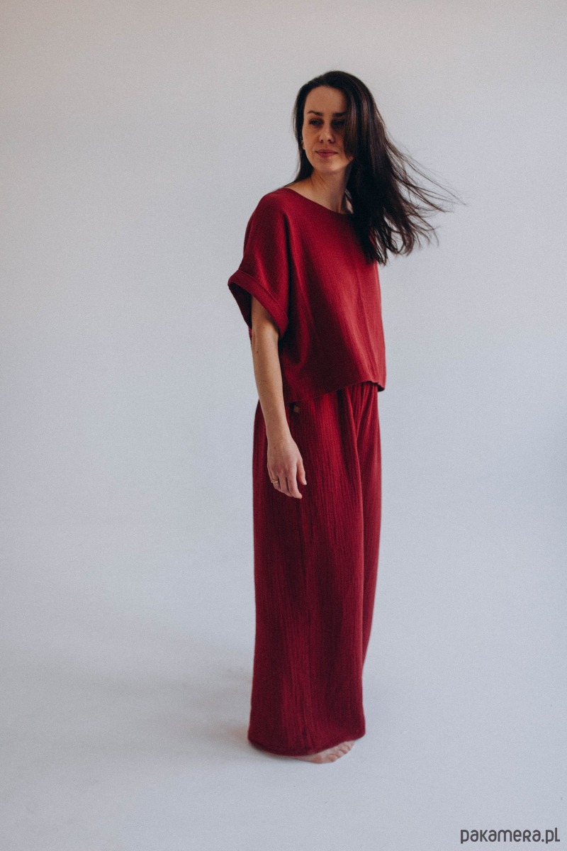 Poznaj odświeżoną wersję naszych bestsellerowych muślinowych spodni. Lekko to spodnie uszyte z cudownie miękkiej certyfikowanej bawełny organicznej o strukturze muślinu. Tak przyjemne i delikatne dla Twojej skóry, że nie będziesz chciała się z nimi rozstawać nawet w najbardziej upalne dni. Lekko mają wysoki stan, szeroką bardzo komfortową dla każdej talii gumkę i sznurek, którym jeszcze lepiej dopasujesz je do siebie. W nowej odsłonie nogawka jest delikatnie zwężona na całej długości. Z topem albo longiem o tej samej nazwie stworzą muślinowy total look, w którym wszędzie poczujesz się dobrze jak w domu.