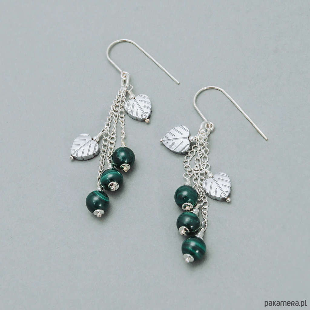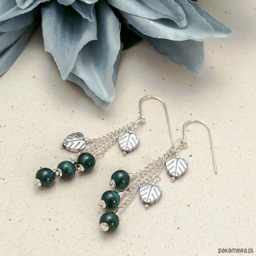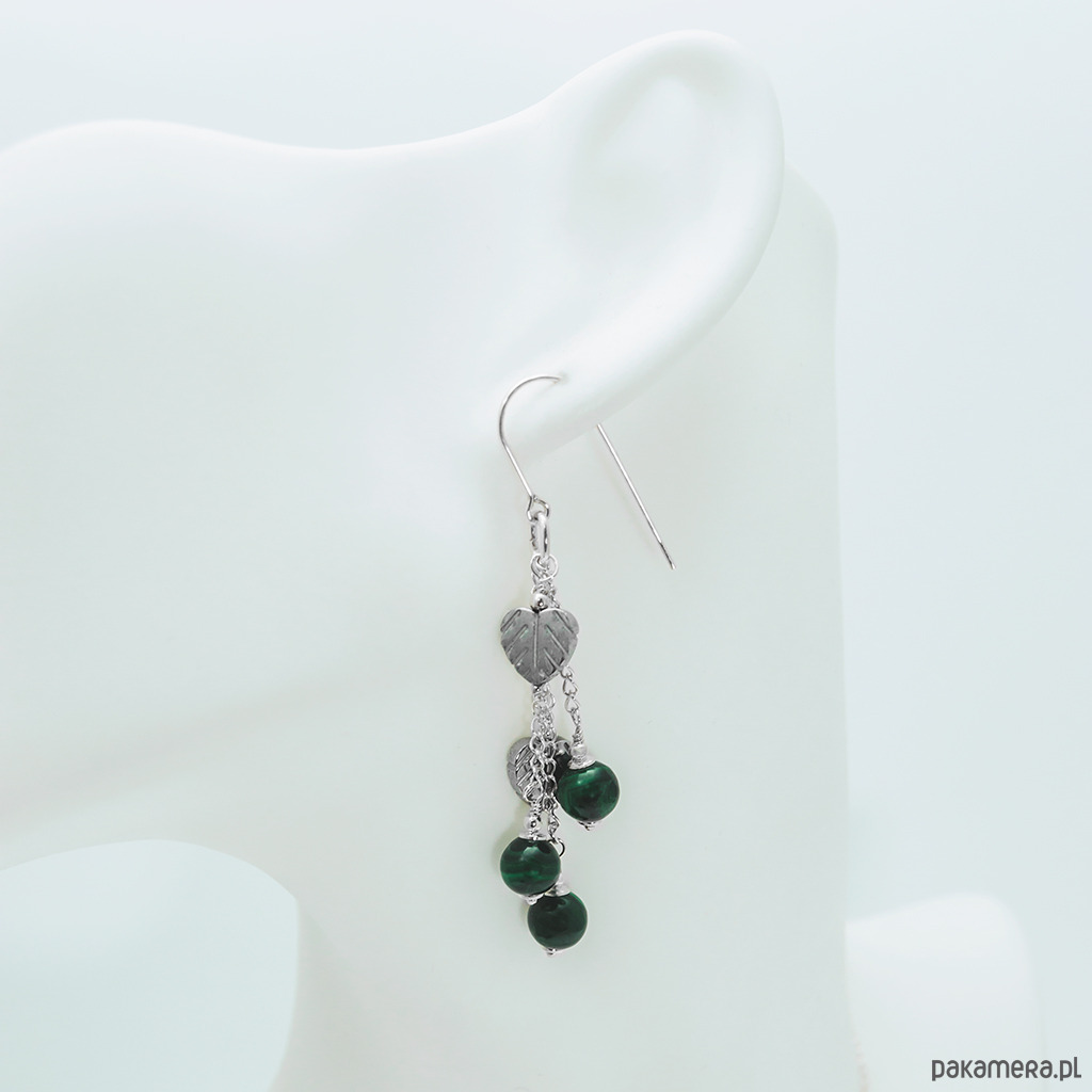 Kamienie: malachit - kulki (7mm); hematyt - listki (8x8mm)