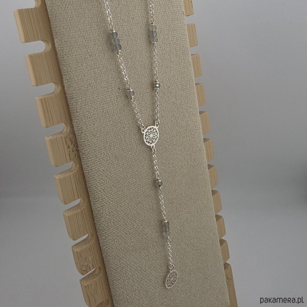 Dłuższy srebrny naszyjnik z labradorytami