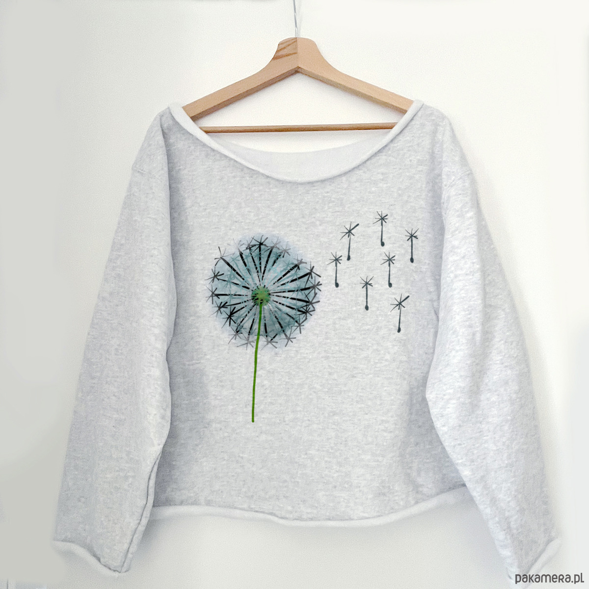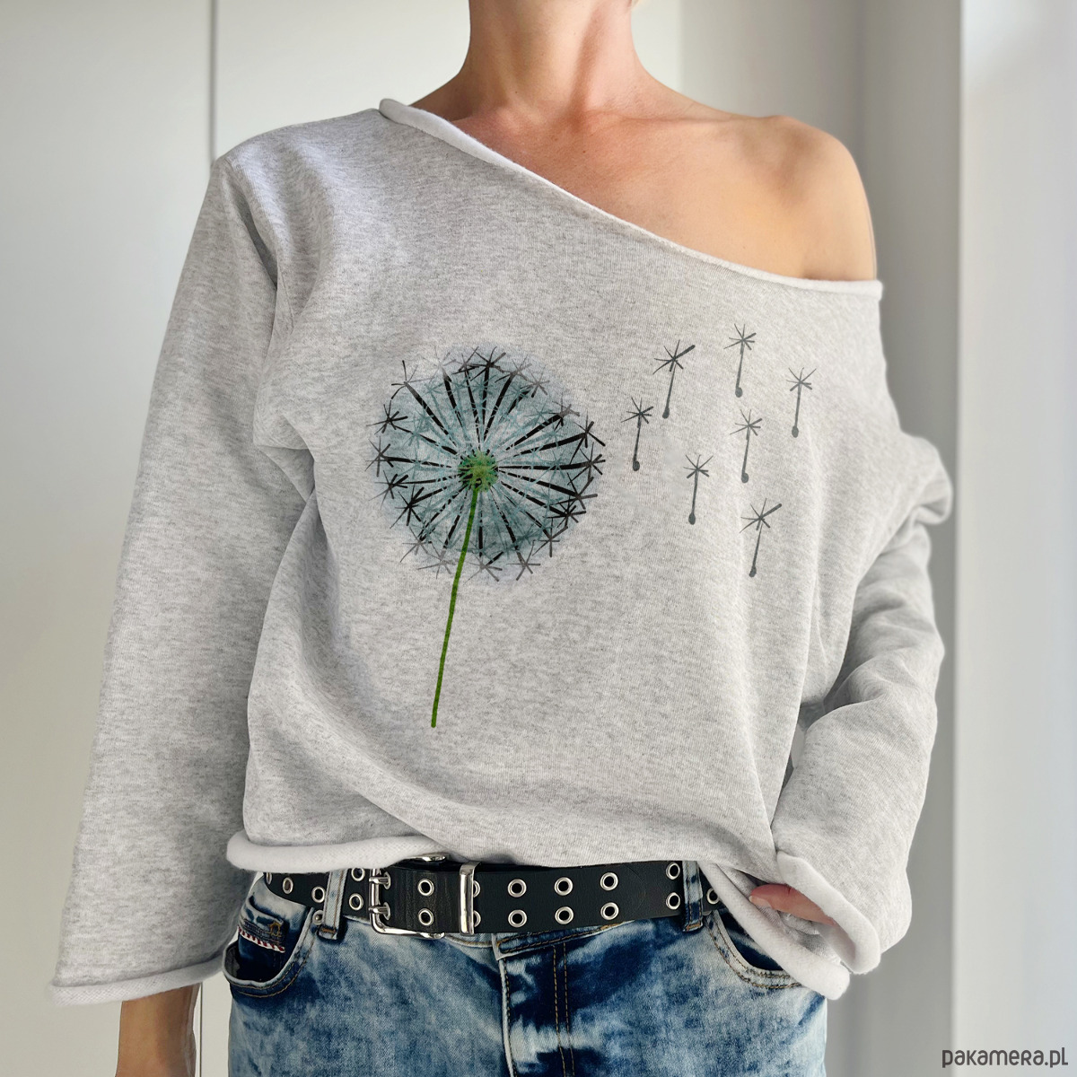 Oryginalna szara bluza z rysunkiem dmuchawca.