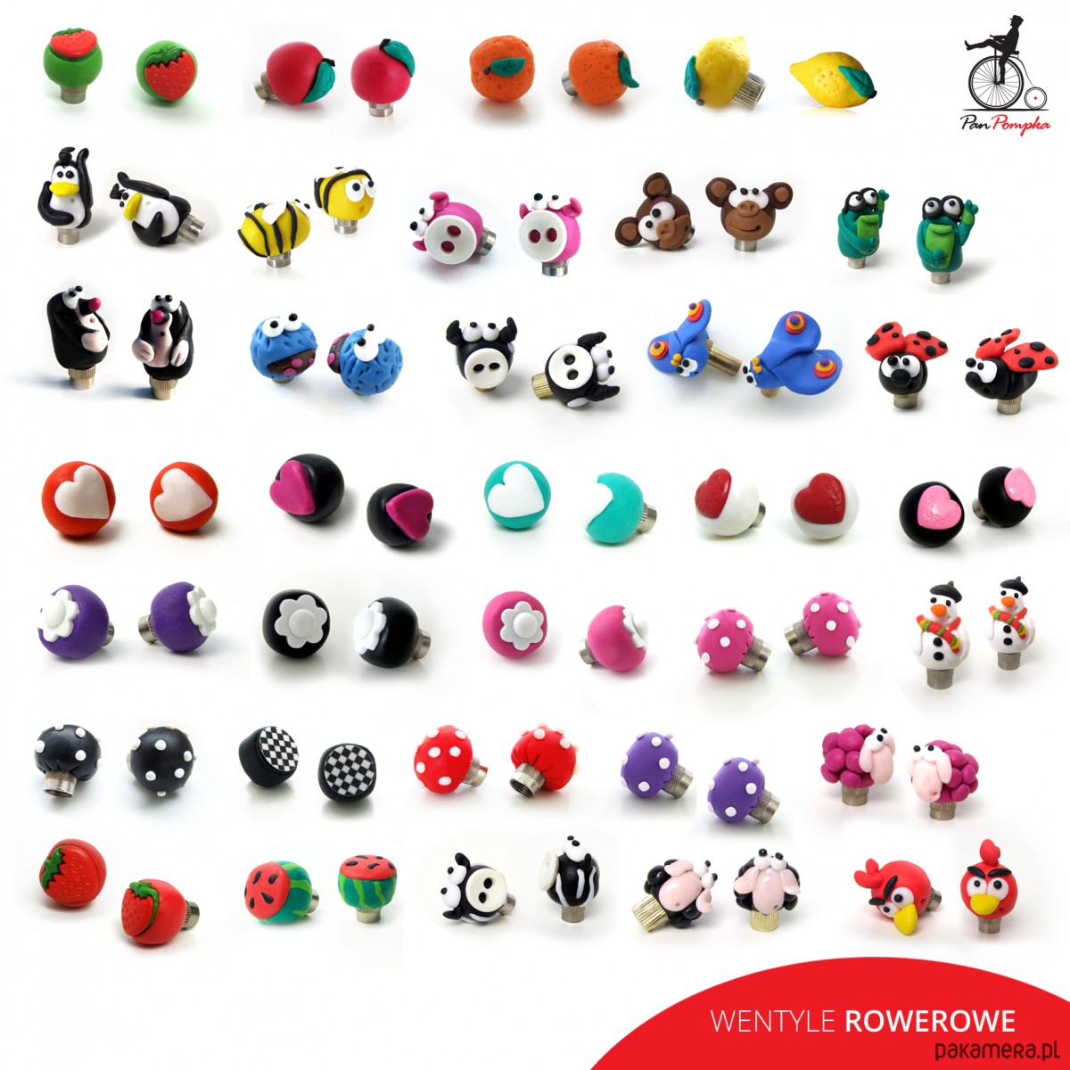 Nakrętki na wentyle od Pana Pompki wspaniałą ozdoba dla Twojego roweru. Dostępne również inne akcesoria do kompletu: pokrowiec na siodełko, koszyk wraz z materiałowym wkładem, osłona tylnego koła, chwyty kierownicy - zobacz całą kolekcję. Do wyboru na wentyle typu samochodowego lub zwykłe rowerowe. 2 sztuki w komplecie. Ręcznie wykonane w Polsce. Idealne na prezent dla ukochanej osoby! do wyboru na wentylki: 1. zwykłe rowerowe ( Dunlop) / szosowe ( Presta) 2. samochodowe ( Schroeder)