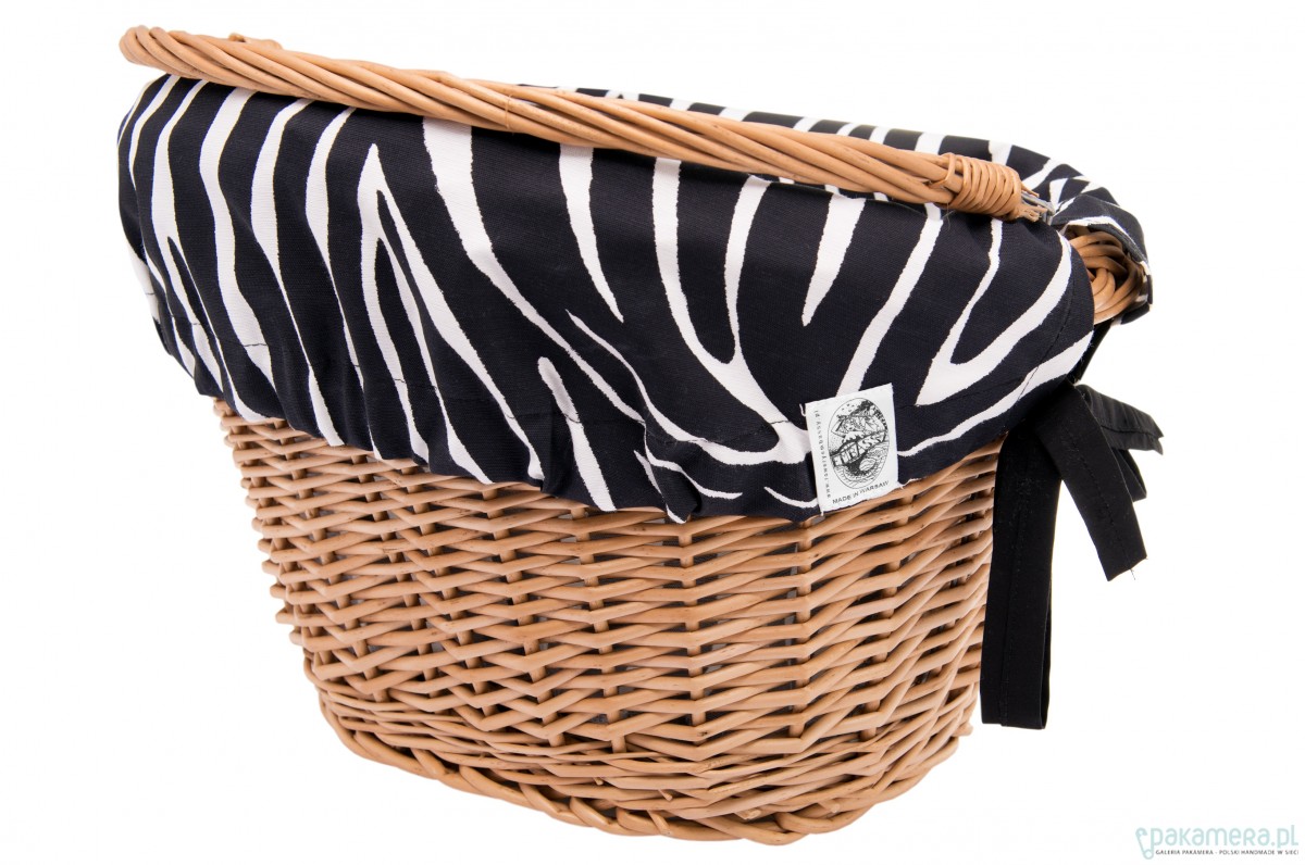 kosz rowerowy z wikliny wraz z ręcznie robionym bawełnianym obszyciem w modny wzór Dzięki dwóm wytrzymałym uchwytom w bardzo łatwy sposób zawiesisz go na swoim rowerze. Wymiary kosza to: długość 40cm szerokość 31cm głębokość 22cm Kosz wiklinowy firmy Embassy jest doskonałym dodatkiem do każdego roweru miejskiego, a dzięki swojemu designowi nada twojemu jednośladowi nowy niepowtarzalny charakter.