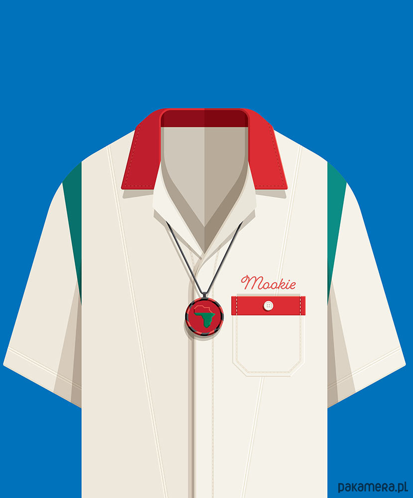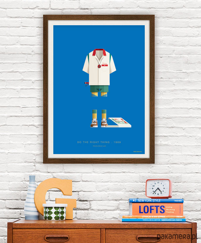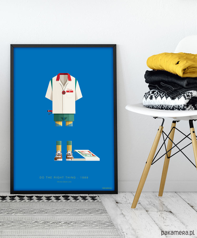 Plakat inspirowany inspirowany filmem "Rób, co należy" (Do The Right Thing) reż. Spike Lee. Idealna dekoracja do domu oraz oryginalny prezent dla każdego fana filmu. Intensywnie niebieski plakat z kostiumem Mookiego odtwarzanego w filmie przez samego Spike'a Lee.