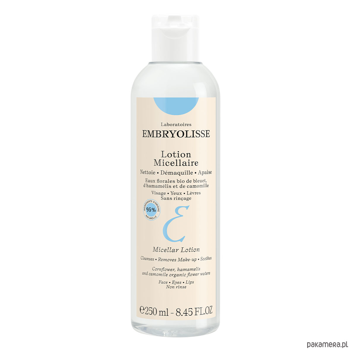 Praktyczny i szybki demakijaż oraz dokładne oczyszczenie twarzy za pomocą jednego produktu do twarzy, oczu i ust. Płyn micelarny nadaje się do stosowania nawet dla najbardziej wrażliwych rodzajów skóry. Zawiera micele (delikatne środki czyszczące) w roztworze wód z kwiatów rumianku, chabru oraz oczaru wirginijskiego. Dodatkowo płyn wzbogacony jest w glicerynę - o działaniu odświeżającym, wygładzającym oraz tonizującym. Ekstremalnie dobrze tolerowany przez wrażliwą skórę. Delikatna konsystencja płynu jest bardzo efektywna – łagodnie pozbywa się zanieczyszczeń oraz dokładnie usuwa makijaż (nawet wodoodporny). Przy regularnym stosowaniu skóra nie tylko pozostaje idealnie czysta i odświeżona, ale cera odzyskuje promienność i blask.