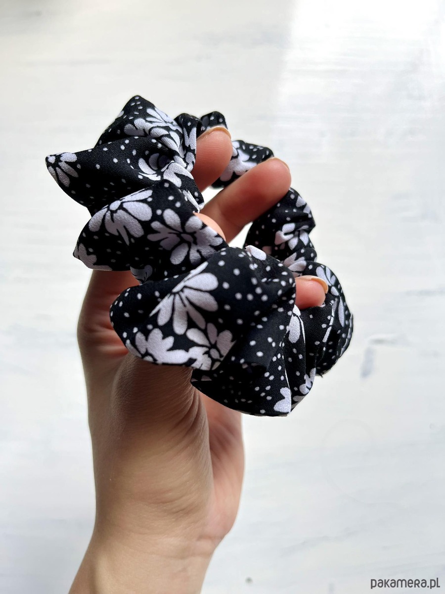 Scrunchie można prać, najlepiej ręcznie. Tkaninę należy co jakiś czas sprasować.