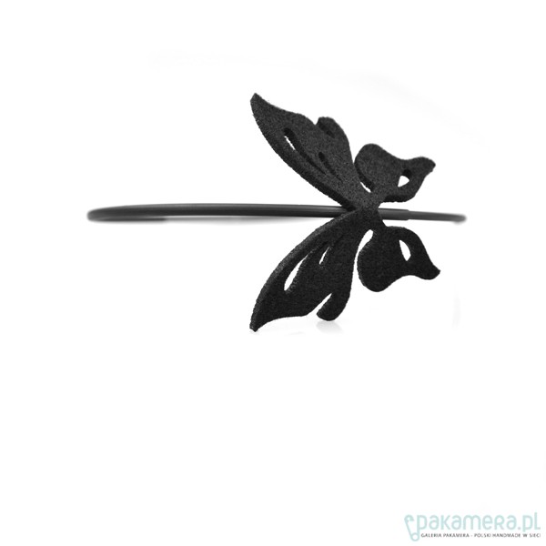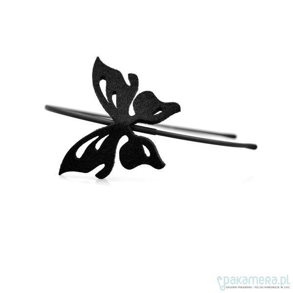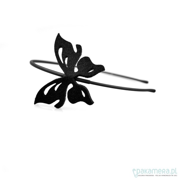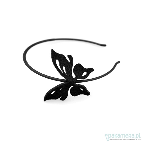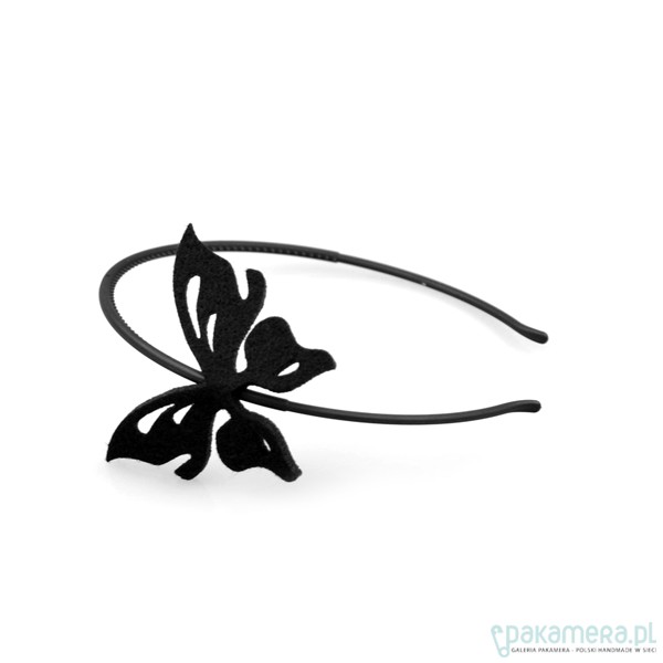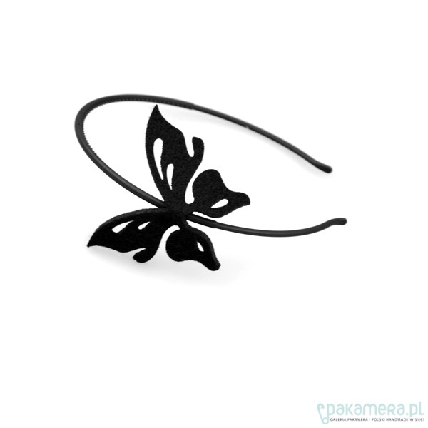 opaska do włosów z filcową ozdobą w kształcie motyla - model: ButterflyBand 1 - kolekcja: hairMe - ozdoba: motyl - kolor: czarny - wymiary: motyl 7,5 cm x 6 cm - materiał: filc 4 mm - modyfikacje: interesuje Cię inny kształt lub kolor filcowego elementu/opaski? skontaktuj się z nami - próbnik kolorystyczny filcu dostępny na ostatnim zdjęciu.