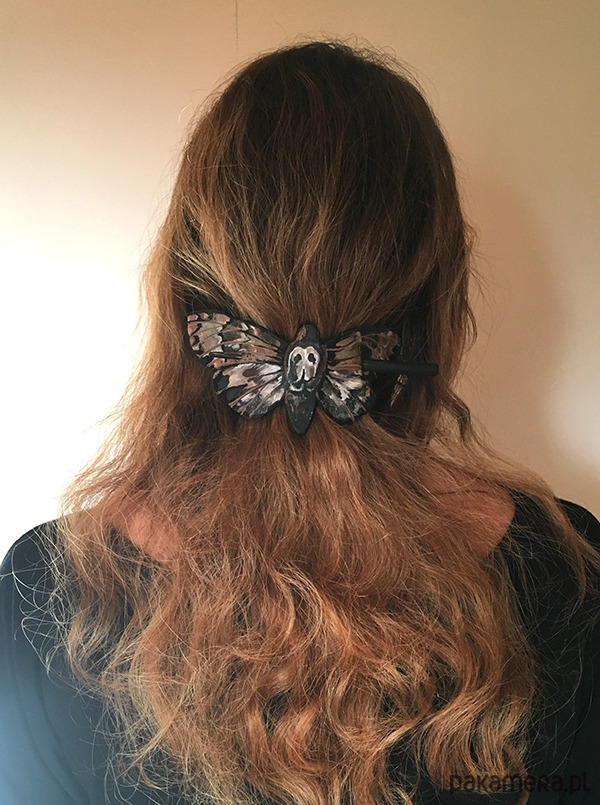Nietypowa, Ręcznie wykonana ze skóry naturalnej spinka do włosów.