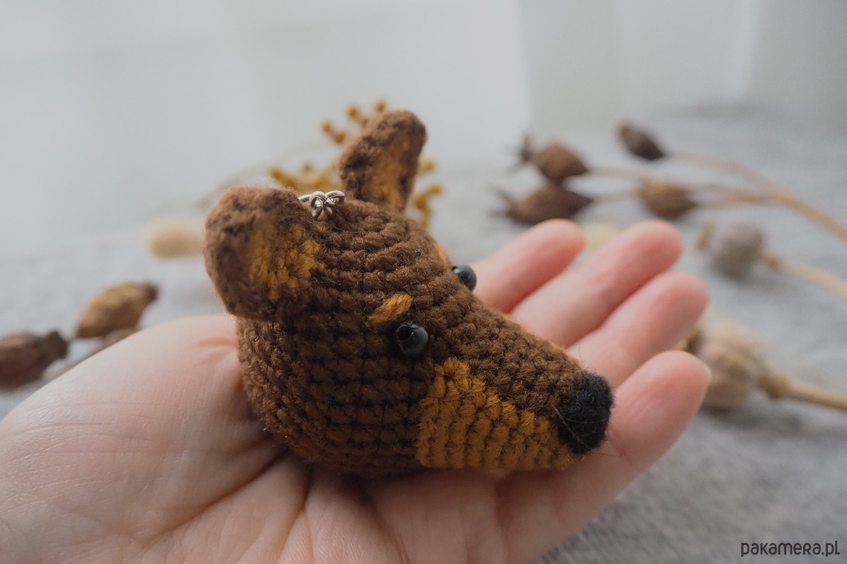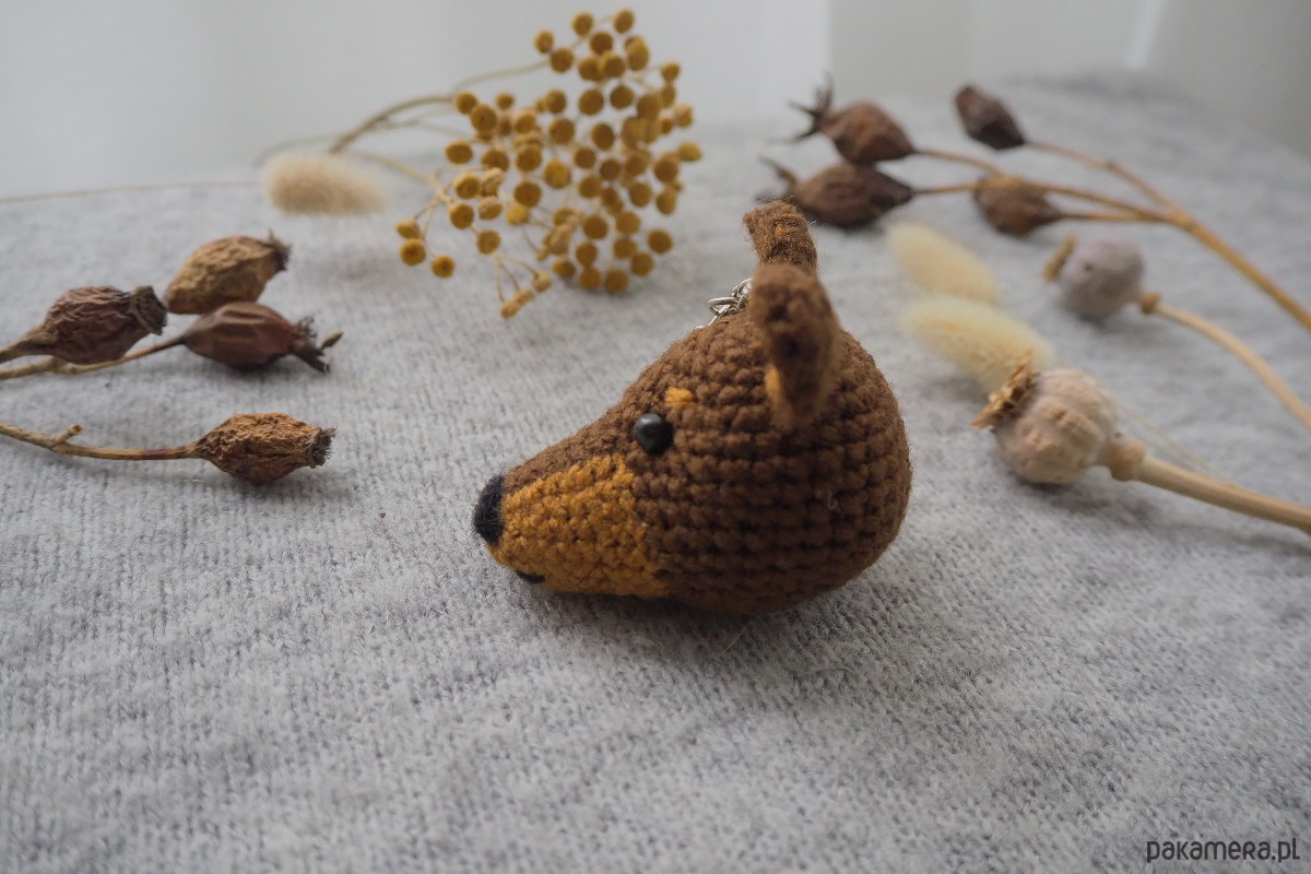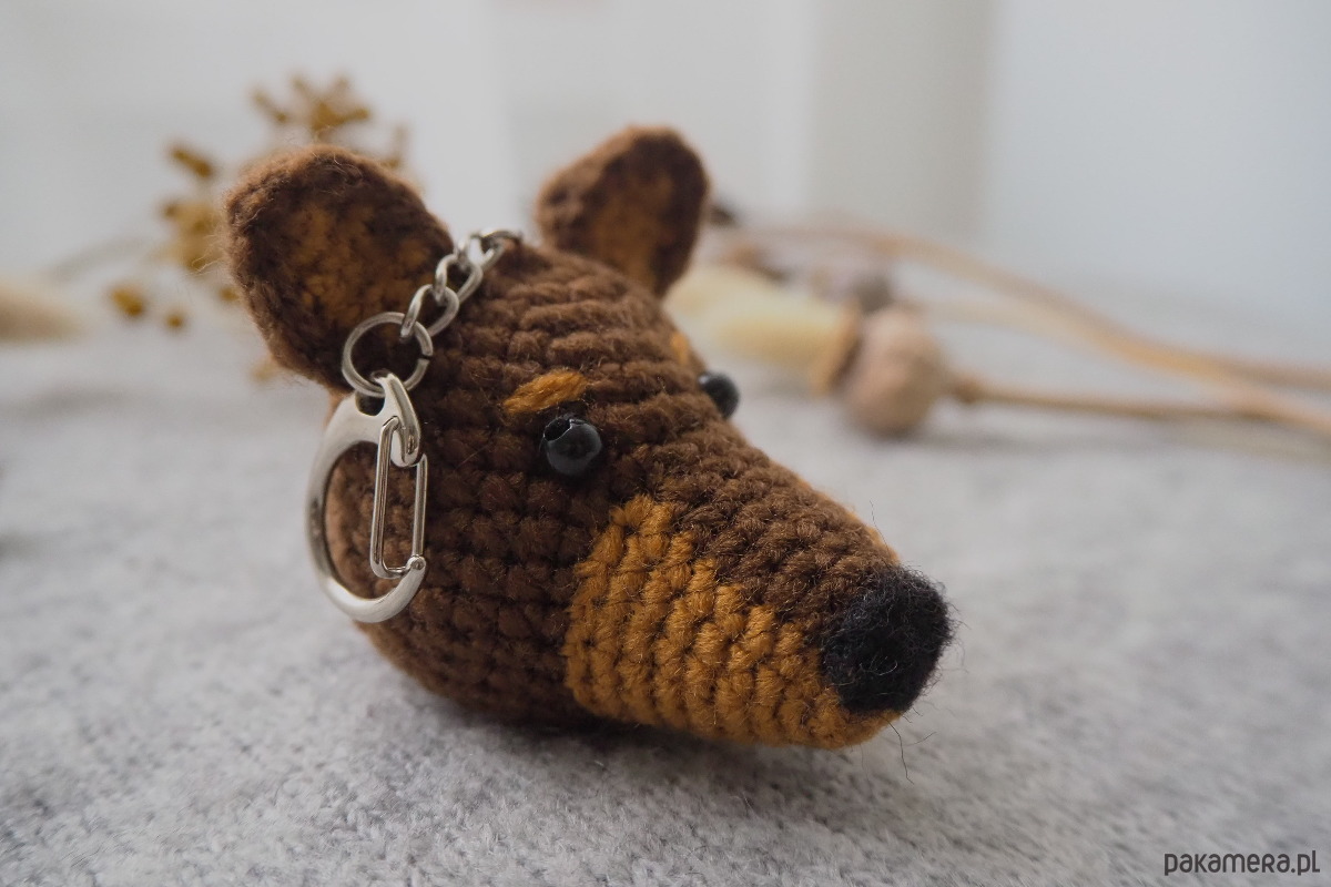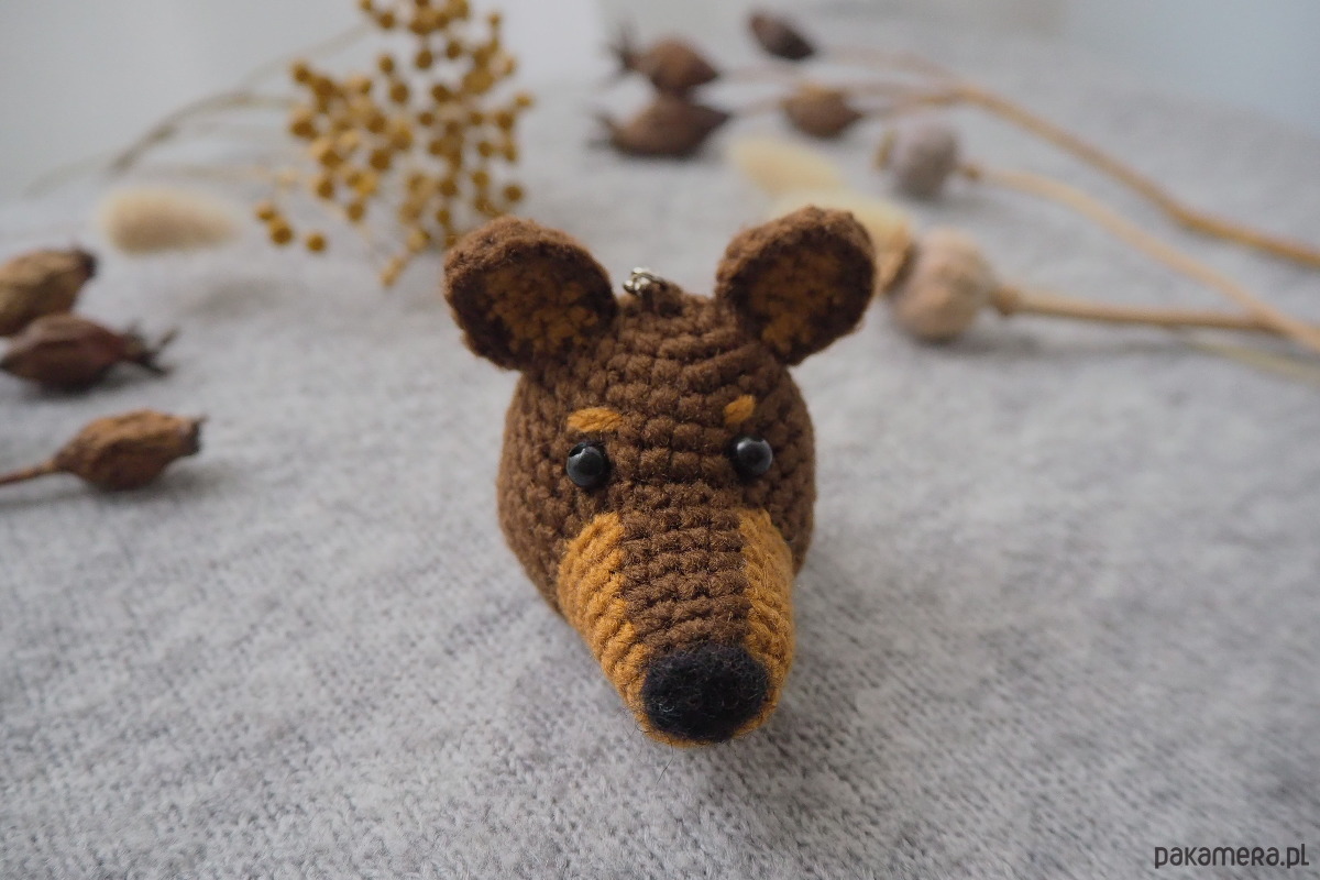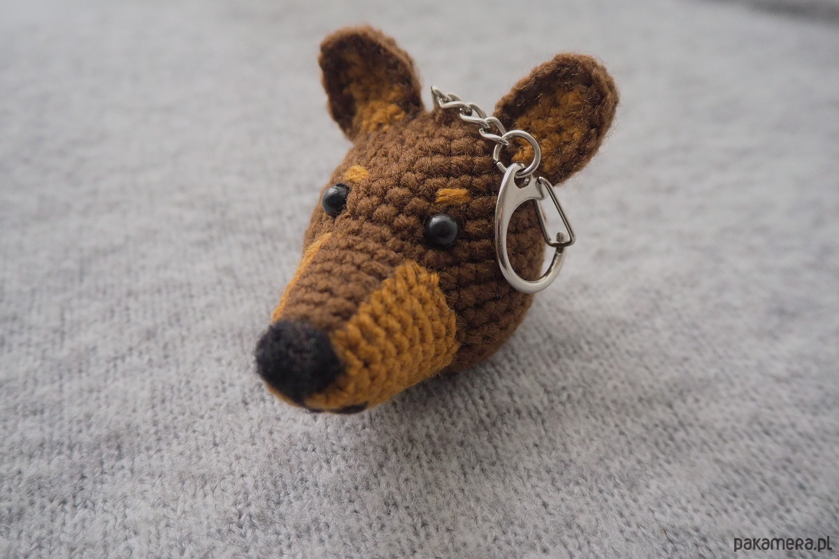 Sympatyczny brelok doberman wykonany ręcznie z włóczki na szydełku.