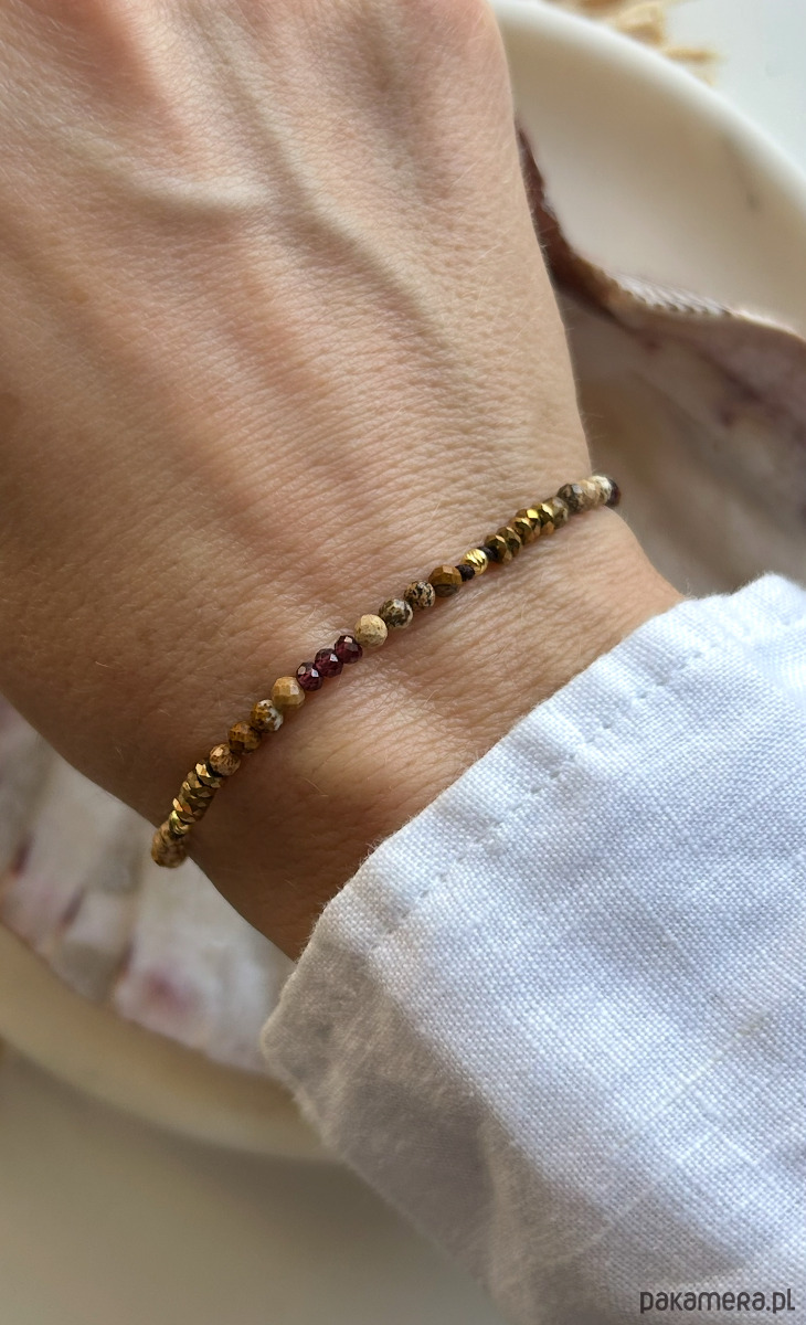Przekładki hematyty oraz pozłacane dodatki.