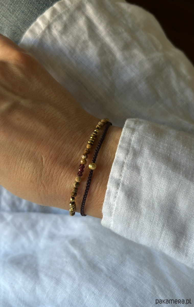Bransoletka na sznureczku, z zapięciem regulowanym- na nadgarstek ok 15-16,5 cm- długość całkowita 18 cm.
