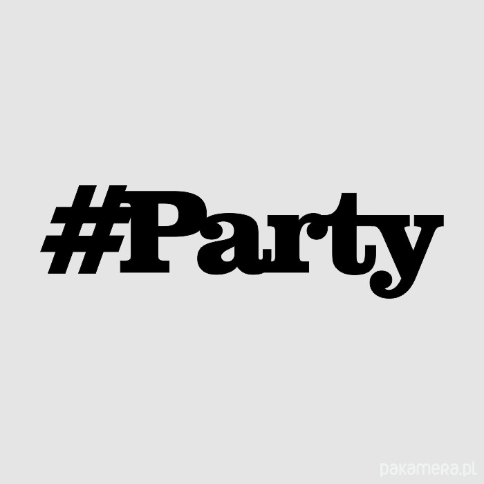 Napis na ścianę "#PARTY". Drewniany - wykonany z wysokiej jakości sklejki (0,4 cm). Ręcznie malowany i szlifowany. Kolor: czarny. Możliwość wyboru koloru z palety barw (ostatnie zdjęcie).