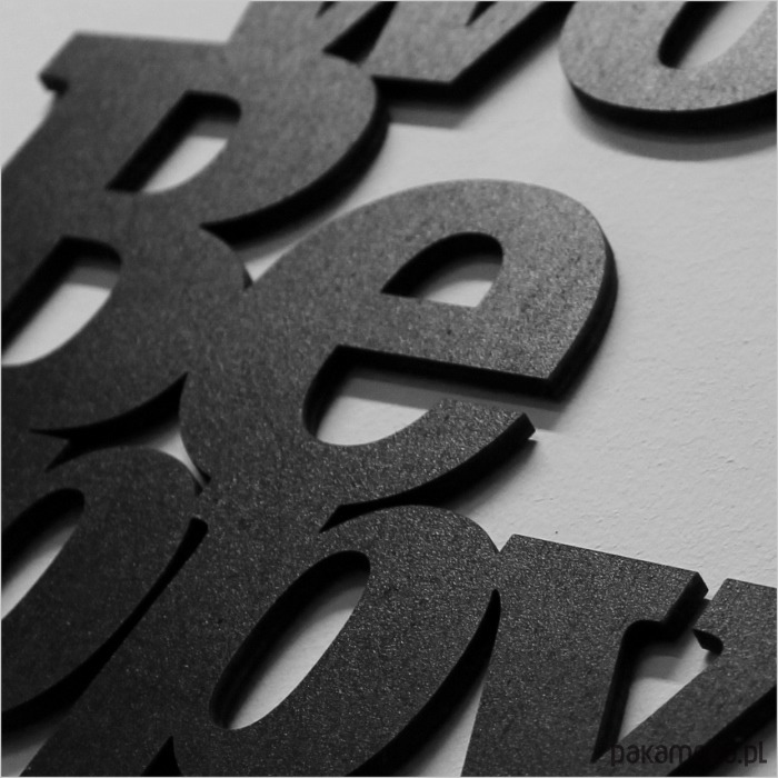 Na spodniej stronie produktu znajduje się dwustronna taśma piankowa, umożliwiająca montaż napisu na ścianie.