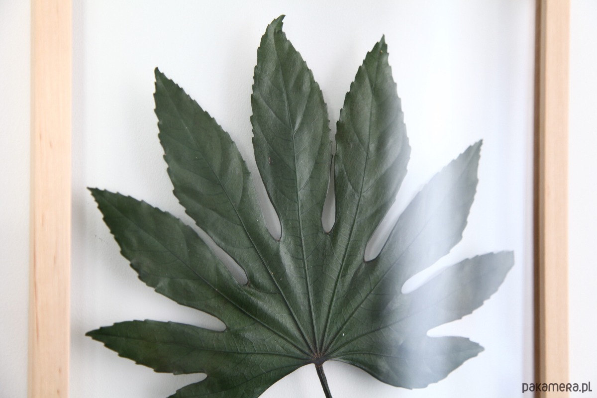 Stabilizowany* liść Aralia w drewnianej ramce z podwójnym szkłem. Minimalistyczny dekor nie wymagający żadnej opieki. Tylko naturalna wyjątkowość i piękno, oprawione w ramę.