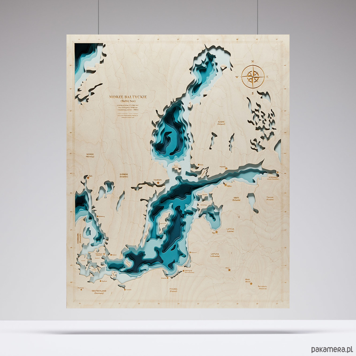 Trójwymiarowa Mapa Morska została stworzona w oparciu o kilkanaście map morskich i żeglugowych, by rzeczywiście oddać linie dna morskiego całego Morza Bałtyckiego i małego fragmentu Morza Północnego. Rzeczywiste rzędne, przebieg granic i rzek, oraz lokalizacja miast. Niesamowita precyzja cięcia i detale sprawiają, ze jest to dodatek w którego można wpatrywać się godzinami.