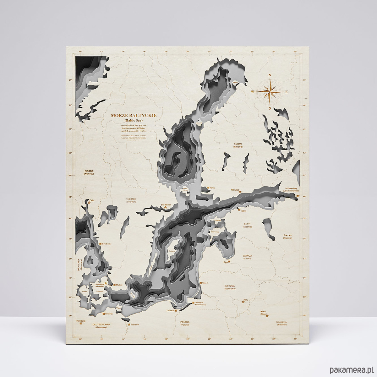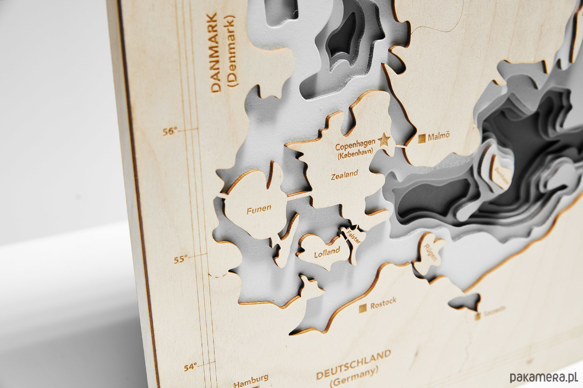 Trójwymiarowa Mapa Morska została stworzona w oparciu o kilkanaście map morskich i żeglugowych, by rzeczywiście oddać linie dna morskiego całego Morza Bałtyckiego i małego fragmentu Morza Północnego. Rzeczywiste rzędne, przebieg granic i rzek, oraz lokalizacja miast. Niesamowita precyzja cięcia i detale sprawiają, ze jest to dodatek w którego można wpatrywać się godzinami.