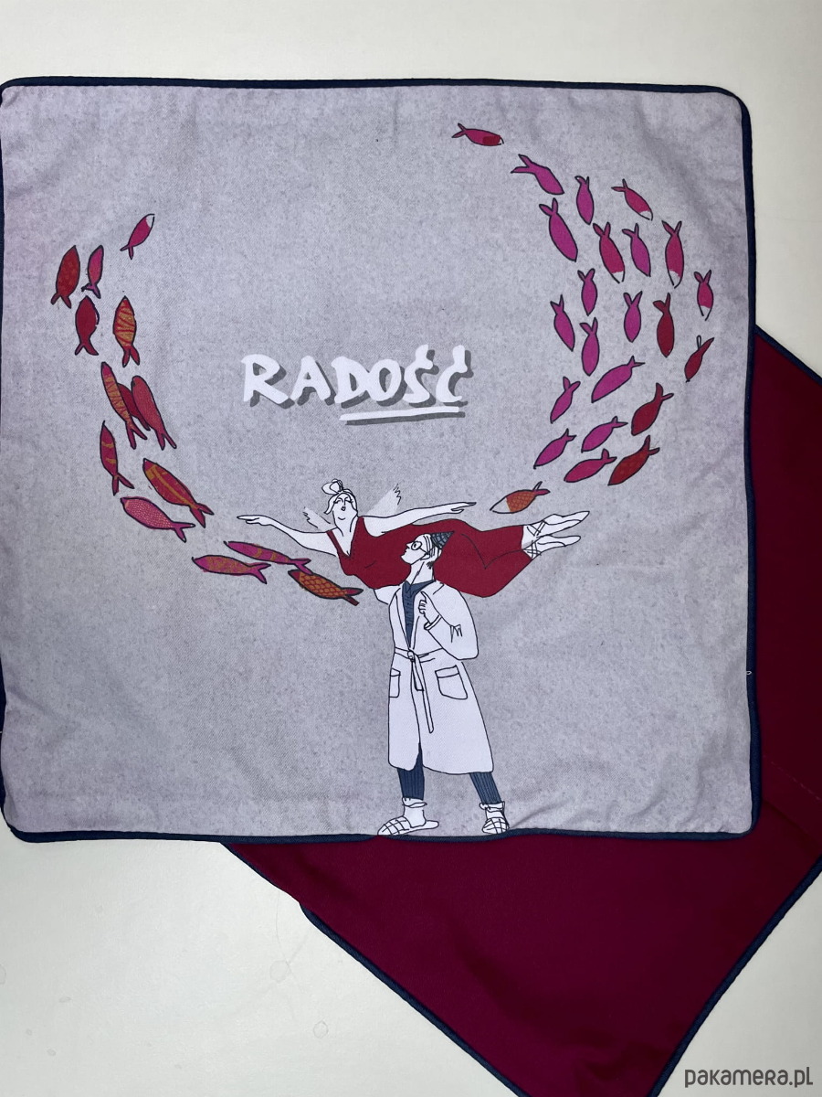 PODUSZKA dekoracyjna, print RADOŚĆ (bawełna)