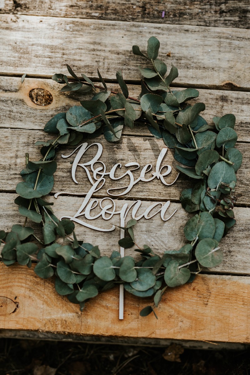 Spersonalizowany topper z proporczykiem stworzony jest z drewna o grubości 3mm.