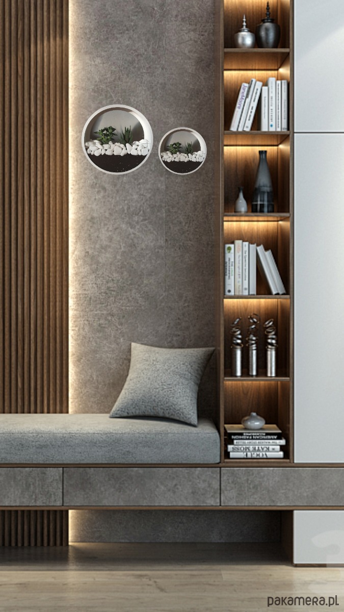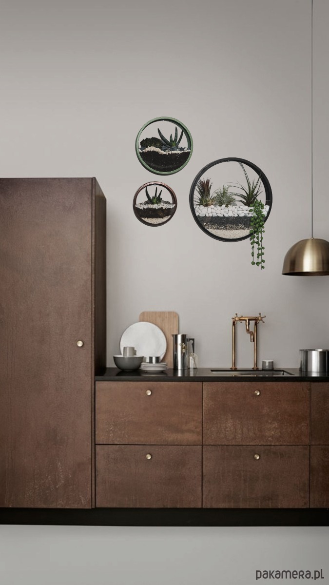 Zestaw trzech okrągłych doniczek ściennych to fenomenalny efekt dekoracyjny we wnętrzach minimalistycznych, nordic, skandi oraz loft, a nawet boho! Zaprezentuj swoje oplątwy i inne rośliny w pięknej aranżacji. Jeżeli nie masz warunków do hodowania roślin, możesz w aranżacji użyć sztucznych roślin lub samych kamieni i drewna!