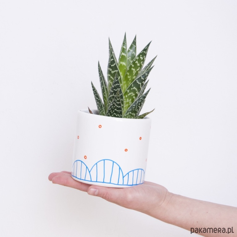 Wysokiej jakości biała doniczka ceramiczna, szkliwiona.
