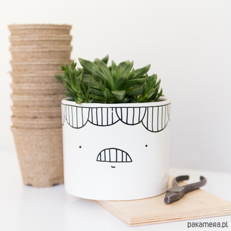 Wysokiej jakości biała doniczka ceramiczna, szkliwiona.